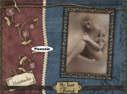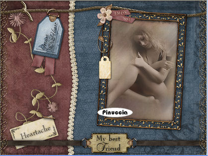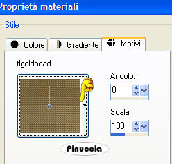 qui puoi trovare qualche risposta ai tuoi dubbi. Se l'argomento che ti interessa non è presente, ti prego di segnalarmelo. Questo tutorial è stato creato con PSP X. Materiale qui I tube dello scrap usati in questo tutorial sono stati acquistati dall'autrice del tutorial originale, Lien. Potete usarli per eseguire questo tutorial e per il vostro uso personale. Non potete offrirli ad altri per nessun motivo. Per favore, rispettate queste condizioni. Grazie per la vostra collaborazione. Filtri: Bordermania qui 1. Apri i tube, la trama e il motivo oro e minimizzali nella tua area di lavoro. Salva spesso il tuo lavoro. 2. Apri il file LG-heartache-03. Shift+D, per fare una copia. Chiudi l'originale. Attiva la copia. Clicca con il tasto destro del mouse sul livello TOU e scegli Elimina. ![]() Questa sarà la tua area di lavoro. Apri il file LG-heartache-10. Posizionati sul livello del tube (Raster 6) e vai a Modifica>Copia. Torna al tuo lavoro e vai a Modifica>Incolla come nuovo livello. Spostalo al confine tra i due colori:![]() 3. Apri il file LG-heartache-08. Posizionati sul livello del tube (Raster 1) e vai a Modifica>Copia. Torna al tuo lavoro e vai a Modifica>Incolla come nuovo livello. Spostalo a sinistra, vedi l'esempio sotto.4. Apri LG-heartache-04. Posizionati sul livello del tube (raster 1) e vai a Modifica>copia. Torna al tuo lavoro e vai a Modifica>Incolla come nuovo livello. Spostalo in basso, vedi l'esempio sotto.5. Apri LG-heartache-05. Posizionati sul livello del tube (raster 1) e vai a Modifica>Copia. Torna al tuo lavoro e vai a Modifica>Incolla come nuovo livello. Spostalo in basso, vedi l'esempio sotto.Più o meno dovresti avere questo: Ricorda che più avanti, potrai ancora spostare gli elementi dello scrap, per sistemarli meglio. ![]() 6. Apri LG-heartache-07. Posizionati sul livello del tube (raster 1) e vai a Modifica>Copia. Torna al tuo lavoro e vai a Modifica>Incolla come nuovo livello. Spostalo in alto, vedi il mio esempio.7. Apri LG-heartache-09. Posizionati sul livello del tube (raster 1) e vai a Modifica>Copia. Torna al tuo lavoro e vai a Modifica>Incolla come nuovo livello. Si trova già al posto giusto. Non occorre spostarlo. 8. Apri LG-heartache-06. Posizionati sul livello del tube (raster 1) e vai a Modifica>Copia. Torna al tuo lavoro e vai a Modifica>Incolla come nuovo livello. Spostalo come mostrato nell'esempio sotto:![]() 9. Apri LG-heartache-02. Posizionati sul livello del tube e vai a Modifica>copia. Torna al tuo lavoro e vai a Modifica>Incolla come nuovo livello. Spostalo nella striscia a sinistra,come fosse appeso alla corda in alto (vedi l'esempio sotto) 10 . Apri LG-heartache-01. Posizionati sul livello del tube e vai a Modifica>Copia. Torna al tuo lavoro e vai a Modifica>Incolla come nuovo livello. Spostalo a destra,sull'angolo superiore sinistro della cornice. ![]() 11. Attiva lo strumento Testo ![]() e scegli un bel font. Livelli>Nuovo livello raster. Aggiungi il tuo nome o il tuo watermark. 12. Controlla che tutto sia a posto. Se vuoi spostare qualcosa, questo è il momento di farlo. Quando sei soddisfatto: Livelli>Unisci>Unisci tutto. Immagine>Aggiungi bordatura, 5 pixels, simmetriche, con un colore qualsiasi, purchè non sia presente nell'immagine. Seleziona il bordo con la bacchetta magica ![]() Se hai aperto in PSP il motivo oro (goldbead.jpg) e l'hai minimizzato nella tua area di lavoro, lo troverai nella lista dei motivi disponibili. Quindi passa il colore di primo piano a Motivi e cerca il Motivo "tlgoldbead.jpg" nella lista: ![]() Riempi la selezione con questo Motivo.Selezione>Nessuna selezione. 13. Immagine>Aggiungi bordatura, 15 pixels, simmetriche, con un colore qualsiasi, purchè non esistente nell'immagine. Seleziona il bordo con la bacchetta magica ![]() Nella paletta dei materiali cerca il motivo HA-texture.jpg. (anche questo presente nello zip). ![]() Riempi la selezione con questo motivo.Selezione>Nessuna selezione. 14. Effetti>Plugins>Bordermania - Frame #2, con i seguenti settaggi: ![]() 15. File>Esporta - jpeg ottimizzata, compressione 20. ![]() Se hai problemi o dubbi, o trovi un link non funzionante, o anche soltanto per un saluto, scrivimi. 30 Gennaio 2007 |