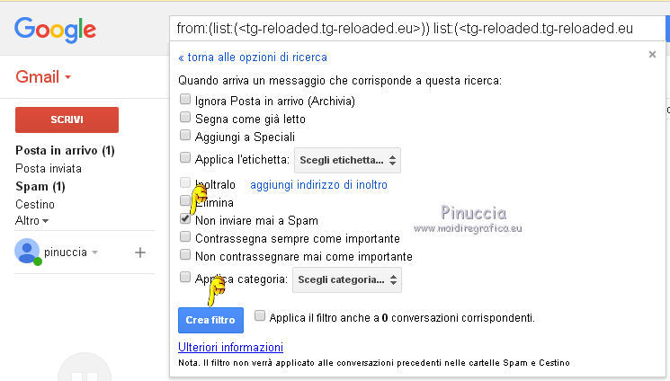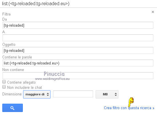 Indica i criteri della scelta e clicca su Crea filtro con questa ricerca