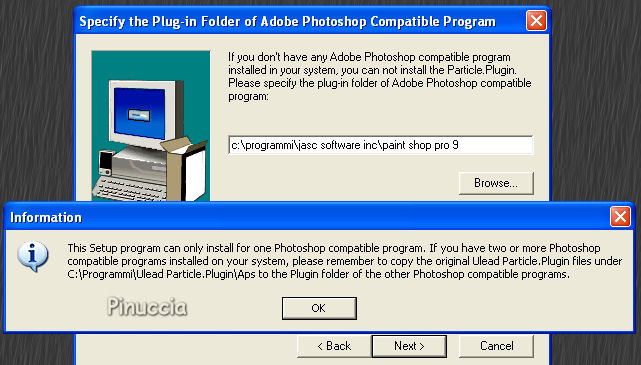 Questa finestra avverte che se non hai un programma compatibile con Adobe Photoshop, non puoi installare il filtro.