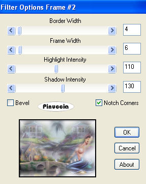 11. Effetti>Plugins>Bordermania / Frame #2, con i seguenti settaggi: