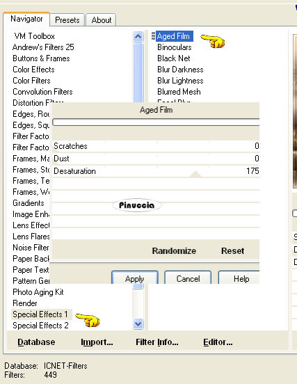 14. Effetti>Plugins>Filter Unlimited - Special Effects 1 - Aged film: