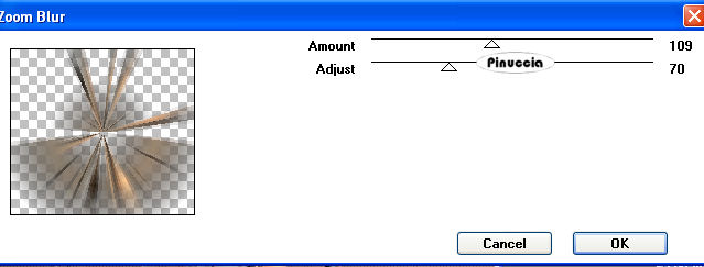 7. Effetti>Plugins>VM Toolbox - Zoom blur, con i seguenti settaggi: