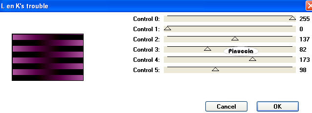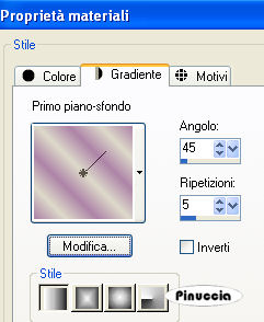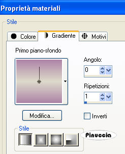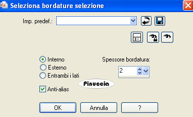 qui puoi trovare qualche risposta ai tuoi dubbi. Se l'argomento che ti interessa non è presente, ti prego di segnalarmelo. Occorrente: Materiale qui I tubes sono di Suzi Sgai e Ninaisu. Apri il font Decollection e minimizzalo. Lo troverai nella lista dei font disponibili quando ti servirà. Filtri: L&K Zitah qui L&K Trouble qui Imposta il colore di primo piano con #AD83A7, e il colore di sfondo con #DDDACA. Passa il colore di primo piano a Gradiente di primo piano/sfondo con i seguenti settaggi: ![]() Passa il colore di sfondo a Gradiente di primo piano/sfondo con i seguenti settaggi: ![]() 1. Apri una nuova immagine trasparente 700 x 500 pixels, e riempila con il gradiente di primo piano.2. Effetti>Plugins>L&K Zitah, con i seguenti settaggi: ![]() 3. Selezione>Seleziona tutto. 4. Selezione>Modifica>Contrai - 60 pixels. Premi sulla tastiera il tasto CANC ![]() 5. Livelli>Nuovo livello raster. Riempi il livello con il colore di primo piano (non il gradiente).6. Effetti>Plugins>L&K Trouble, con i seguenti settaggi: ![]() 7. Effetti>Effetti di distorsione>Mulinello - 360 gradi. ![]() 8. Regola>Tonalità e saturaizone>Viraggio: ![]() Effetti>Effetti di bordo>Aumenta di più. 9. Livelli>Nuovo livello raster. Riempi con il gradiente di primo piano.10. Nella paletta dei livelli abbassa l'opacità di questo livello al 78%. 11. Livelli>Unisci>Unisci giù. 12. Effetti>Effetti 3D>Sfalsa ombra, con i seguenti settaggi: ![]() Ripeti l'Effetto Sfalsa ombra, cambiando verticale e orizzontale con -10. 13. Selezione>Modifica>Seleziona bordature selezione: ![]() 14. Livelli>Nuovo livello raster. Riempi il livello con il gradiente di sfondo.15. Selezione>Nessuna selezione. Livelli>Unisci>Unisci visibile. 16. Apri il tube con la donna e vai a Modifica>Copia. Torna al tuo lavoro e vai a Modifica>Incolla>Incolla come nuovo livello. 17. Immagine>Rifletti. Sposta il tube a destra.18. Attiva lo strumento Selezione , rettangolo,e seleziona la parte del tube esterna al bordo. ![]() 19. Premi sulla tastiera il tasto CANC. Selezione>Nessuna selezione. 20. Regola>Messa a fuoco>Metti a fuoco. 21. Livelli>Unisci>Unisci visibile. 22. Attiva lo strumento Selezione , rettangolo,e traccia un rettangolo a sinistra, pressappoco come nel mio esempio: ![]() 23. Livelli>Nuovo livello raster. Riempi la selezione con il gradiente di primo piano.24. Effetti>Plugins>L&K Zitah, con i settaggi usati al punto 2. 25. Abbassa l'opacità di questo livello al 60%. 26. Selezione>Modifica>Seleziona bordature selezione: ![]() Livelli>Nuovo livello raster. Riempi la selezione con il gradiente di sfondo.27. Selezione>Deseleziona. 28. Effetti>Effetti 3D>Sfalsa ombra, con i seguenti settaggi: ![]() 29. Livelli>Unisci>Unisci visibile. 30. Apri il tube con il fiore, e vai a Modifica>copia. Torna al tuo lavoro e vai a Modifica>Incolla>Incolla come nuovo livello. Regola>Messa a fuoco>Metti a fuoco. 31. Posiziona il fiore al centro del rettangolo.32. Effetti>Effetti 3D>sfalsa ombra, con i seguenti settaggi. ![]() Ripeti l'Effetto Sfalsa ombra, cambiando verticale e orizzontale con -5. 33. Livelli>Unisci>Unisci visibile. 34. Attiva lo strumento Testo , font Decollection, crea come vettore,regola la dimensione secondo il testo e la versione di PSP che stai usando. Scrivi il tuo testo. Livelli>Converti in livello raster. 35. Effetti>Effetti 3D>Sfalsa ombra, con i seguenti settaggi: ![]() Regola>Messa a fuoco>Metti a fuoco. 36. Livelli>Unisci>Unisci tutto. 37. Immagine>Aggiungi bordatura, 2 pixel, simmetriche, con il colore nero. Seleziona questo bordo con la bacchetta magica ![]() ![]() e riempilo con il gradiente di sfondo.Selezione>Nessuna selezione. L'immagine è finita. Se vuoi realizzare lo script, ti occorrono anche un'immagine di sfondo e un motivo argento per le tabelle laterali. Per eseguire lo script Apri lo script di Jeannette che trovi qui, e segui i preliminari descritti alla fine di questo tutorial, fino all'inserimento dello sfondo-suono. Dopo aver inserito lo sfondo-suono, dovrai indicare allo script dove trovare le immagini. Clicca su Origine e identifica i punti di inserimento dei vari elementi dello script. Se hai messo tutti i file in una cartella, il percorso del suono ti servirà da guida per l'inserimento degli altri files: ti basterà cambiare l'ultima parte: il nome e l'estensione. Nella schermata sotto è indicato il punto in cui dovrai inserire il percorso delle due immagini di sfondo. 1. Qui inserisci il percorso della prima immagine di sfondo. 2. Qui inserisci il percorso dello sfondo argento, che servirà per le tabelle laterali. 3. Qui inserisci il percorso dell'immagine principale. ![]() Ricorda che, contemporaneamente, puoi controllare il risultato andando su Anteprima. fai molta attenzione alle estensioni dei files e alle maiuscole-minuscole, che devono essere corrette, altrimenti lo script non troverà le immagini da inserire Clicca adesso sulla linguetta Modifica, per aggiungere il testo. clicca due volte all'interno del riquadro. Apparirà la cornice che ti dà il via libera per sostituire il testo esistente e aggiungere il tuo. Quando hai finito, clicca all'esterno e la cornice sparirà. Il tuo messaggio con lo script è pronto per il tasto Invia. Se non vuoi spedirlo e vuoi soltanto tenerlo per te, vai a File>Salva con nome e mettilo in una cartella a tua scelta. Ricordati, però, che quando vorrai rivedere lo script, i files devono trovarsi nello stesso posto. Se nel frattempo li avrai spostati, vedrai soltanto delle crocette rosse. Avvertimento: non devi preoccuparti se in Modifica non vedrai il messaggio come dovrebbe essere (per fare questo devi andare in Anteprima). Ricorda ancora che per inviare il messaggio ti devi posizionare su Modifica. ![]() Se hai problemi o dubbi, o trovi un link non funzionante, o anche soltanto per dirmi che ti è piaciuto, scrivimi. 13 Giugno 2008 |