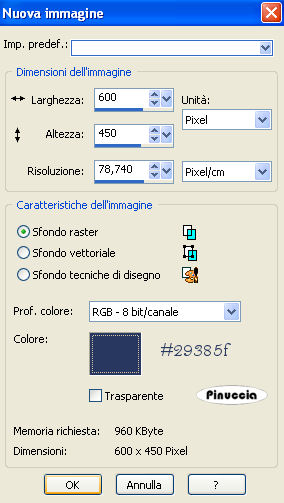 1. Apri una nuova immagine 600 x 459 pixels con il colore di primo piano.