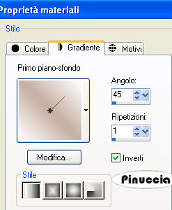 qui puoi trovare qualche risposta ai tuoi dubbi. Se l'argomento che ti interessa non è presente, ti prego di segnalarmelo. Occorrente: Materiale qui Il materiale viene da uno scrapset di Juliette. Non aprire la gif Bellen-lila in PSP, perchè serve per lo script. Imposta il colore di primo piano con #C5AEA1, e il colore di sfondo con con il bianco #FFFFFF. Passa il colore di primo piano a Gradiente di primo piano/sfondo con i seguenti settaggi. ![]() 1. Apri una nuova immagine trasparente 600 x 450 pixels, e riempila con il gradiente.2. Apri il "bc-misted-rose-tube", e vai a Modifica>Copia. Torna al tuo lavoro e vai a Modifica>Incolla come nuovo livello. Ripeti ancora una volta e posiziona le due rose a destra e a sinistra.![]() 3. Apri "bc-ballet-ornament2", e vai a Modifica>Copia. Torna al tuo lavoro e vai a Modifica>Incolla come nuovo livello. Immagine>Capovolgi. Immagine>Ruota per gradi - 45 gradi a sinistra. ![]() Spostalo nell'angolo in basso a destra.![]() 4. Apri il resto dei tubes, copiali e incollali, quindi posizionali come nell'esempio.![]() 5. Attiva i livelli dei tre ornamenti rotondi e vai a Regola>Messa a fuoco>Metti a fuoco. 6. Abbassa l'opacità dei livelli delle due rose al 22%. 7. Regola l'opacità degli altri livelli a tuo piacimento. Nel mio esempio ho abbassato l'opacità del gruppo di ballerine al 50%, e ho trascinato il livello sotto quello delle due rose. Ho abbassato il livello dei ballerini al 75%. Controlla che tutto sia a posto e vai a Livelli>Unisci>Unisci visibile. 8. Selezione>Seleziona tutto. Selezione>Modifica>Contrai - 10 pixels. 9. Effetti>Effetti 3D>Sfalsa ombra, con i seguenti settaggi, colore nero: ![]() Ripeti l'Effetto Sfalsa ombra, ma cambiando verticale e orizzontale con -2. 10. Selezione>Deseleziona. 11. Immagine>Aggiungi bordatura, 1 pixel, simmetriche, con il colore bianco. 12. Livelli>Nuovo livello raster. Riempi questo livello con il colore bianco.Abbassa l'opacità del livello al 18%. Il risultato dipenderà dalle trasparenze che hai scelto. 13. Livelli>Unisci>Unisci tutto. L'immagine è finita. Se vuoi realizzare lo script ti occorrono anche una immagine di sfondo e la gif Bellen-lila che hai trovato nello zip. Per eseguire lo script Apri lo script di Jeannette che trovi qui, e segui i preliminari descritti alla fine di questo tutorial, fino all'inserimento dello sfondo-suono. Dopo aver inserito lo sfondo-suono, dovrai indicare allo script dove trovare le immagini. Clicca su Origine e identifica i punti di inserimento dei vari elementi dello script. Se hai messo tutti i file in una cartella, il percorso del suono ti servirà da guida per l'inserimento degli altri files: ti basterà cambiare l'ultima parte: il nome e l'estensione. Nella schermata sotto è indicato il punto in cui dovrai inserire il percorso dell'immagine di sfondo, che servirà per le tabelle fluttuanti. ![]() Nella schermata sotto è indicato il punto in cui dovrai inserire il percorso dell'immagine principale. ![]() Per trovare il punto dove inserire il percorso della gif, devi scorrere lo script fino alla fine, dopo la chiusura della tag ( ![]() Ricorda che, contemporaneamente, puoi controllare il risultato andando su Anteprima. fai molta attenzione alle estensioni dei files e alle maiuscole-minuscole, che devono essere corrette, altrimenti lo script non troverà le immagini da inserire Clicca adesso sulla linguetta Modifica, per aggiungere il testo. clicca due volte all'interno del riquadro. Apparirà la cornice che ti dà il via libera per sostituire il testo esistente e aggiungere il tuo. Quando hai finito, clicca all'esterno e la cornice sparirà. Il tuo messaggio con lo script è pronto per il tasto Invia. Se non vuoi spedirlo e vuoi soltanto tenerlo per te, vai a File>Salva con nome e mettilo in una cartella a tua scelta. Ricordati, però, che quando vorrai rivedere lo script, i files devono trovarsi nello stesso posto. Se nel frattempo li avrai spostati, vedrai soltanto delle crocette rosse. Avvertimento: non devi preoccuparti se in Modifica non vedrai il messaggio come dovrebbe essere (per fare questo devi andare in Anteprima). Ricorda ancora che per inviare il messaggio ti devi posizionare su Modifica. ![]() Se hai problemi o dubbi, o trovi un link non funzionante, o anche soltanto per dirmi che ti è piaciuto, scrivimi. 17 Maggio 2008 |