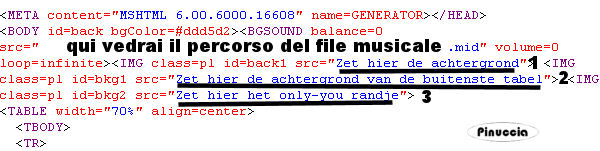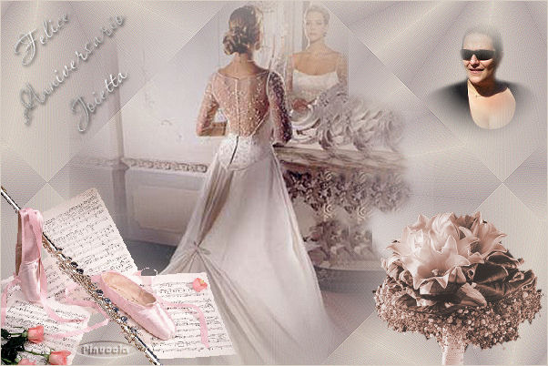 qui puoi trovare qualche risposta ai tuoi dubbi. Se l'argomento che ti interessa non è presente, ti prego di segnalarmelo. Occorrente: Materiale qui Tutto il materiale è di Jeannette- Filtro: Simple qui Imposta il colore di primo piano con #d7cdc3, e il colore di sfondo con #b5a8a7. Passa il colore di primo piano a Gradiente di primo piano/sfondo con i seguenti settaggi. ![]() 1. Apri una nuova immagine trasparente 600 x 400 pixels, e riempila con il gradiente.2. Effetti>Effetti di bordo>Aumenta di più. 3. Effetti>Plugins>Simple - Diamonds. Regola>Messa a fuoco>Metti a fuoco, 1 o due volte. 4. Apri il tube della sposa e vai a Modifica>Copia. Torna al tuo lavoro e vai a Modifica>Incolla come nuovo livello. Sposta il tube al centro.Regola>Messa a fuoco>Metti a fuoco. 5. Apri il tube con l'uomo, e vai a Modifica>Copia. Torna al tuo lavoro e vai a Modifica>Incolla come nuovo livello. Sposta il tube nell'angolo in alto a destra.Abbassa l'opacità di questo livello al 62%. 6. Apri il tube "ballet jean", e vai a Modifica>Copia. Torna al tuo lavoro e vai a Modifica>Incolla come nuovo livello. Sposta il tube nell'angolo in basso a sinistra.7. Apri il tube "boeket" e vai a Modifica>Copia. Torna al tuo lavoro e vai a Modifica>Incolla come nuovo livello. Sposta il tube nell'angolo in basso a destra.Abbassa l'opacità di questo livello al 78%. 8. Controlla che tutto sia al posto giusto e vai a Livelli>Unisci>Unisci visibile. 9. Imposta il colore di sfondo con un motivo argento, e chiudi il colore di primo piano. Attiva lo strumento Testo , crea come vettore.Scrivi il tuo testo. 10. Immagine>ruota per gradi - 45 gradi a sinistra. ![]() Sposta il testo nell'angolo in alto a sinistra. Livelli>Converti in livello raster. 11. Effetti>Effetti 3D>Sfalsa ombra, con i seguenti settaggi: ![]() Regola>Messa a fuoco>Metti a fuoco. 12. Livelli>Unisci>Unisci tutto. 13. Immagine>Aggiungi bordatura, 1 pixel, simmetriche, con il colore di primo piano. L'immagine è finita. Se vuoi realizzare lo script ti occorrono anche tre immagini di sfondo. Nello zip trovi lo sfondo "only you", che ti servirà per le tabelle laterali. Per eseguire lo script Apri lo script di Jeannette che trovi qui, e segui i preliminari descritti alla fine di questo tutorial, fino all'inserimento dello sfondo-suono. Dopo aver inserito lo sfondo-suono, dovrai indicare allo script dove trovare le immagini. Clicca su Origine e identifica i punti di inserimento dei vari elementi dello script. Se hai messo tutti i file in una cartella, il percorso del suono ti servirà da guida per l'inserimento degli altri files: ti basterà cambiare l'ultima parte: il nome e l'estensione. Nella schermata sotto è indicato il punto in cui dovrai inserire il percorso delle immagini di sfondo. 1. Qui inserisci il percorso della prima immagine di sfondo. 2. Qui inserisci il percorso dello sfondo che servirà per le tabelle esterne. 3. Qui inserisci il percorso dello sfondo che hai trovato nello zip "only-you randje". ![]() Nella schermata sotto è indicato il punto in cui inserire il percorso dell'immagine principale. ![]() Ricorda che, contemporaneamente, puoi controllare il risultato andando su Anteprima. fai molta attenzione alle estensioni dei files e alle maiuscole-minuscole, che devono essere corrette, altrimenti lo script non troverà le immagini da inserire Clicca adesso sulla linguetta Modifica, per aggiungere il testo. clicca due volte all'interno del riquadro. Apparirà la cornice che ti dà il via libera per sostituire il testo esistente e aggiungere il tuo. Quando hai finito, clicca all'esterno e la cornice sparirà. Il tuo messaggio con lo script è pronto per il tasto Invia. Se non vuoi spedirlo e vuoi soltanto tenerlo per te, vai a File>Salva con nome e mettilo in una cartella a tua scelta. Ricordati, però, che quando vorrai rivedere lo script, i files devono trovarsi nello stesso posto. Se nel frattempo li avrai spostati, vedrai soltanto delle crocette rosse. Avvertimento: non devi preoccuparti se in Modifica non vedrai il messaggio come dovrebbe essere (per fare questo devi andare in Anteprima). Ricorda ancora che per inviare il messaggio ti devi posizionare su Modifica. Dedicata ad un'amica che in questi giorni ha festeggiato l'anniversario di matrimonio. ![]() ![]() Se hai problemi o dubbi, o trovi un link non funzionante, o anche soltanto per dirmi che ti è piaciuto, scrivimi. 3 Giugno 2008 |