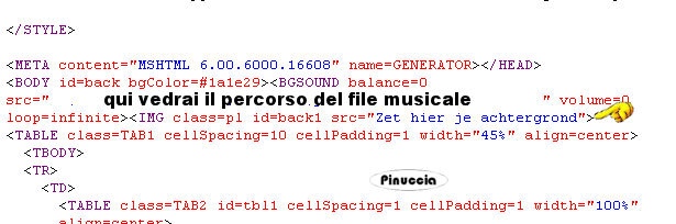 qui puoi trovare qualche risposta ai tuoi dubbi. Se l'argomento che ti interessa non è presente, ti prego di segnalarmelo. Occorrente: Materiale qui Il bel tube usato per questo tutorial è di H©nne. La foto viene dal web. Imposta il colore di primo piano con #372D4F, e il colore di sfondo con #ffffff (bianco). 1. Apri la foto "arcades". File>Esporta>Pennello personalizzato, assegna un nome al pennello e clicca ok. 2. Apri una nuova immagine trasparente 500 x 450 pixels, e riempila con il colore di primo piano.3. Attiva lo strumento Pennello ![]() cerca e seleziona il pennello che hai appena esportato, e clicca una volta con il tasto destro del mouse, per applicare il pennello con il colore di sfondo. ![]() 4. Immagine>Ridimensiona, 600 x 450 pixels, mantieni proporzioni NON selezionato. 5. Regola>Messa a fuoco>Metti a fuoco, 3 o 4 volte, finchè il risultato non ti piace. 6. Apri il tube dei ballerini e vai a Modifica>copia. Torna al tuo lavoro e vai a Modifica>Incolla>Incolla come nuovo livello. 7. Effetti>Effetti 3D>Sfalsa ombra: ![]() Livelli>Unisci>Unisci tutto. 8. Immagine>Aggiungi bordatura, 10 pixels, simmetriche, con il colore nero. Seleziona questo bordo con la bacchetta magica ![]() ![]() e riempilo con un colore chiaro scelto dall'immagine.Nel mio esempio ho usato #A39BAE. 9. Effetti>Effetti 3D>Pulsante: ![]() Selezione>Nessuna selezione. L'immagine è finita. Se vuoi realizzare lo script, dovrai inserirla due volte, insieme a un'immagine di sfondo. Per eseguire lo script Apri lo script di Jeannette che trovi qui, e segui i preliminari descritti alla fine di questo tutorial, fino all'inserimento dello sfondo-suono. Dopo aver inserito lo sfondo-suono, dovrai indicare allo script dove trovare le immagini. Clicca su Origine e identifica i punti di inserimento dei vari elementi dello script. Se hai messo tutti i file in una cartella, il percorso del suono ti servirà da guida per l'inserimento degli altri files: ti basterà cambiare l'ultima parte: il nome e l'estensione. Nella schermata sotto sono indicati i punti in cui dovrai inserire, tra le virgolette, il percorso delle due immagini di sfondo, 1. Qui inserisci il percorso dell'immagine di sfondo. ![]() Nella schermata sotto sono indicati i punti in cui dovrai inserire il percorso dell'immagine principale. ![]() Ricorda che, contemporaneamente, puoi controllare il risultato andando su Anteprima. fai molta attenzione alle estensioni dei files e alle maiuscole-minuscole, che devono essere corrette, altrimenti lo script non troverà le immagini da inserire Clicca adesso sulla linguetta Modifica, per aggiungere il testo. clicca due volte all'interno del riquadro. Apparirà la cornice che ti dà il via libera per sostituire il testo esistente e aggiungere il tuo. Quando hai finito, clicca all'esterno e la cornice sparirà. Il tuo messaggio con lo script è pronto per il tasto Invia. Se non vuoi spedirlo e vuoi soltanto tenerlo per te, vai a File>Salva con nome e mettilo in una cartella a tua scelta. Ricordati, però, che quando vorrai rivedere lo script, i files devono trovarsi nello stesso posto. Se nel frattempo li avrai spostati, vedrai soltanto delle crocette rosse. Avvertimento: non devi preoccuparti se in Modifica non vedrai il messaggio come dovrebbe essere (per fare questo devi andare in Anteprima). Ricorda ancora che per inviare il messaggio ti devi posizionare su Modifica. ![]() Se hai problemi o dubbi, o trovi un link non funzionante, o anche soltanto per dirmi che ti è piaciuto, scrivimi. 21 Aprile 2008 |