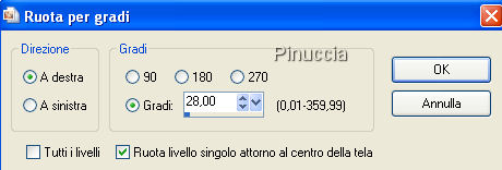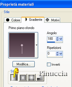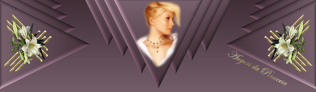 qui puoi trovare qualche risposta ai tuoi dubbi. Se l'argomento che ti interessa non è presente, ti prego di segnalarmelo. Occorrente: Materiale qui 1. Imposta il colore di primo piano con #402D36, e il colore di sfondo con #735D69. Passa il colore di primo piano a Gradiente di primo piano/sfondo, con i seguenti settaggi: ![]() 2. Apri una nuova immagine trasparente 1024x300 pixels, e riempila con il gradiente.Se intendi realizzare lo script di Jeannette, è molto importante mantenere queste misure. 3. Apri una nuova immagine trasparente 300 x 300 pixels. Attiva lo strumento Selezione , triangolo,e disegna un triangolo, partendo dall'angolo in alto a sinistra. Riempi la selezione con il gradiente.Effetti>Effetti 3D>Smusso a incasso, con i seguenti settaggi. ![]() Selezione>Nessuna selezione. 4. Immagine>Capovolgi. Modifica>Copia. Torna all'immagine più grande (1024x300 pixels), e vai a Modifica>Incolla>Incolla come nuovo livello. ![]() 5. Ripeti Modifica>Incolla>Incolla come nuovo livello x 6 volte, e disponi i triangoli come nel mio esempio. 6. Quando hai sistemato i triangoli, nella paletta dei livelli spostali in ordine inverso, in modo che le copie si trovino in sequenza sotto il primo triangolo. Livelli>Unisci>Unisci visibile. ![]() 7. Attiva nuovamente l'immagine piccola con il triangolo. Immagine>Ruota a destra. Modifica>Copia. Torna al tuo lavoro (1024x300), e vai a Modifica>Incolla>Incolla come nuovo livello, e ripeti 3 volte. Sistema i tre duplicati sotto il primo triangolo.Chiudi il livello inferiore e vai a Livelli>Unisci>Unisci visibile. Livelli>Duplica. Immagine>Rifletti. Livelli>Unisci>Unisci tutto. ![]() 8. Apri il tube con la donna "Beautiful misted lady 4". Immagine>Ridimensiona, a 250 pixels di altezza. Modifica>Copia. Torna al tuo lavoro e vai a Modifica>Incolla>Incolla come nuovo livello. Posiziona il tube nel triangolo al centro.Regola>Messa a fuoco>Metti a fuoco. 9. Apri il tube con i fiori "bloem corner 1". Immagine>Ruota>Ruota per gradi: ![]() 10. Immagine>Ridimensiona, al 50%. Regola>Messa a fuoco>Metti a fuoco. Modifica>Copia. Torna al tuo lavoro e vai a Modifica>Incolla>Incolla come nuovo livello. Sistema il tube sul triangolo laterale.11. Livelli>Duplica. Immagine>Rifletti. Livelli>Unisci>Unisci tutto. 12. Chiudi il colore di primo piano. Imposta il colore di sfondo su Motivi, e seleziona un motivo oro. Attiva lo strumento Testo , scegli un bel font dimensione 3 pixels, crea come vettore, e scrivi il tuo testo. Immagine>Ruota>Ruota per gradi. ![]() 13. Posiziona il testo. Livelli>converti in livello raster. Regola>Messa a fuoco>Metti a fuoco. Effetti>Effetti 3D>Sfalsa ombra: ![]() Selezione>Nessuna selezione. L'immagine è finita, ed è sufficiente per realizzare lo script. Per eseguire lo script Apri lo script di Jeannette che trovi qui, e segui i preliminari descritti alla fine di questo tutorial, fino all'inserimento dello sfondo-suono. Dopo aver inserito lo sfondo-suono, dovrai indicare allo script dove trovare l'immagine principale. Clicca su Origine e identifica il punto di inserimento . Se hai messo tutti i file in una cartella, il percorso del suono ti servirà da guida per l'inserimento degli altri files: ti basterà cambiare l'ultima parte: il nome e l'estensione. Nella schermata sotto è indicato il punto in cui dovrai inserire il percorso dell'immagine principale. ![]() Ricorda che, contemporaneamente, puoi controllare il risultato andando su Anteprima. fai molta attenzione alle estensioni dei files e alle maiuscole-minuscole, che devono essere corrette, altrimenti lo script non troverà le immagini da inserire Clicca adesso sulla linguetta Modifica, per aggiungere il testo. clicca due volte all'interno del riquadro. Apparirà la cornice che ti dà il via libera per sostituire il testo esistente e aggiungere il tuo. Quando hai finito, clicca all'esterno e la cornice sparirà. Il tuo messaggio con lo script è pronto per il tasto Invia. Se non vuoi spedirlo e vuoi soltanto tenerlo per te, vai a File>Salva con nome e mettilo in una cartella a tua scelta. Ricordati, però, che quando vorrai rivedere lo script, i files devono trovarsi nello stesso posto. Se nel frattempo li avrai spostati, vedrai soltanto delle crocette rosse. Avvertimento: non devi preoccuparti se in Modifica non vedrai il messaggio come dovrebbe essere (per fare questo devi andare in Anteprima). Ricorda ancora che per inviare il messaggio ti devi posizionare su Modifica. |