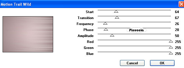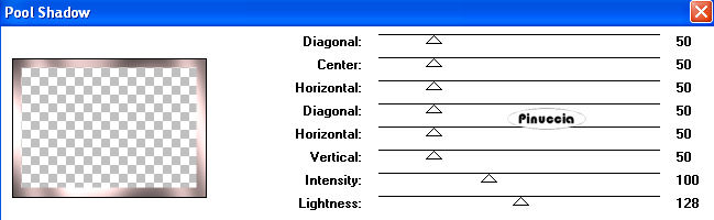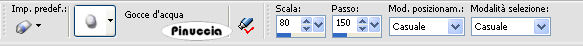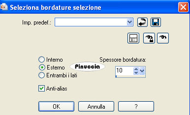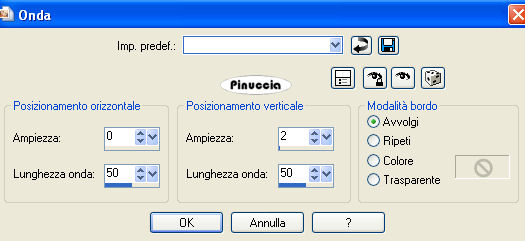 qui puoi trovare qualche risposta ai tuoi dubbi. Se l'argomento che ti interessa non è presente, ti prego di segnalarmelo. Per tradurre questo tutorial ho usato PSP X. Occorrente: Materiale qui Il tube del fiore è di Nightangel. Filtri: VM Toolbox qui Simple qui FM Tile Tools qui Greg's Factory Output II qui Imposta il colore di primo piano con #DEC2C1, e il colore di sfondo con #9A8687. Passa il colore di primo piano a Gradiente di primo piano/sfondo con i seguenti settaggi. ![]() 1. Apri una nuova immagine trasparente 700 x 500 pixels, e riempila con il gradiente.2. Effetti>Plugins>VM Toolbox - Motion Trail Wild ![]() 3. Effetti>Effetti di distorsione>Onda: ![]() 4. Selezione>Seleziona tutto. Selezione>Modifica>Contrai - 100 pixels. Selezione>Inverti. 5. Effetti>Plugins>Simple - 4Way Average. 6. Effetti>Plugins>Simple - Blintz. 7. Effetti>Plugins>FM Tile Tools - Blend Emboss, con i settaggi standard. ![]() 8. Selezione>Inverti. Effetti>Plugins>FM Tile Tools - Blend Emboss, con i settaggi standard. 9. Selezione>Modifica>Seleziona bordature selezione. ![]() 10. Livelli>Nuovo livello raster. Riporta il colore di primo piano al colore DEC2C1, e riempi il livello con questo colore.11. Effetti>Plugins>Greg's Factory - Pool Shadow, con i settaggi standard. ![]() 12. Effetti>Effetti 3D>sfalsa ombra: ![]() Regola>Messa a fuoco>Metti a fuoco. 13. Apri il tube del fiore e vai a Modifica>Copia. Torna al tuo lavoro e vai a Modifica>Incolla come nuovo livello. Sposta il tube a destra, in modo che lo stelo rimanga appoggiato sul bordo:![]() 14. Regola>Tonalità e Saturazione>Tonalità/Saturazione/Luminosità: ![]() 15. Effetti>Effetti 3D>Sfalsa ombra: ![]() Ripeti l'Effetto Sfalsa ombra, cambiando verticale e orizzontale con -5. Regola>Messa a fuoco>Metti a fuoco. 16. Apri il tube del corner. Regola>Tonalità e Saturazione>Tonalità/Saturazione/Luminosità: . ![]() 17. Modifica>Copia. Torna al tuo lavoro e vai a Modifica>Incolla come nuovo livello. Spostalo al centro a sinistra del quadrato.18. Modifica>Incolla come nuovo livello. Immagine>Ruota per gradi - 180 gradi a destra: ![]() 19. Posiziona l'angolo contro l'altro come nell'esempio: ![]() 20. Nella paletta dei livelli sposta il livello del fiore in alto. 21. Livelli>Unisci>Unisci visibile. 22. Selezione>Seleziona tutto. Selezione>Modifica>Contrai - 30 pixels. Selezione>Inverti. 23. Livelli>Nuovo livello raster. Riempi con il colore di primo piano.24. Effetti>Plugins>Greg's Factory - Pool Shadow: ![]() 25. Selezione>Deseleziona. Effetti>Effetti 3D>Sfalsa ombra: ![]() Ripeti l'Effetto Sfalsa ombra, cambiando verticale e orizzontale con -5. 26. Modifica>Incolla come nuovo livello (il tube dell'angolo dovrebbe essere ancora in memoria). Posizionalo in alto a sinistra del bordo interno.![]() 27. Effetti>Effetti 3D>Sfalsa ombra: ![]() 28. Livelli>Duplica e ripeti, posizionando il tube negli altri tre angoli. Livelli>Unisci>Unisci visibile. 29. Attiva lo strumento Testo scegli un font, crea come vettore, e scrivi un testo.Per il mio esempio ho usato il font 911Porscha Livelli>Converti in livello raster. Effetti>Effetti 3d>Sfalsa ombra, con i settaggi che preferisci. Livelli>Unisci>Unisci visibile. 30. Livelli>Nuovo livello raster. 31. Attiva lo strumento Ornamento e seleziona gocce d'acqua (standard in PSP), con i seguenti settaggi.![]() 32. Applica una serie di gocce sotto il fiore (vedi il mio esempio). 33. Regola>Messa a fuoco>Metti a fuoco, 3 volte, e abbassa l'opacità di questo livello al 43%. 34. Livelli>Unisci>Unisci tutto. L'immagine è finita. Se vuoi realizzare lo script ti serviranno anche due immagini di sfondo. Per eseguire lo script Apri lo script di Jeannette che trovi qui, e segui i preliminari descritti alla fine di questo tutorial, fino all'inserimento dello sfondo-suono. Dopo aver inserito lo sfondo-suono, dovrai indicare allo script dove trovare le immagini. Clicca su Origine e identifica i punti di inserimento dei vari elementi dello script. Se hai messo tutti i file in una cartella, il percorso del suono ti servirà da guida per l'inserimento degli altri files: ti basterà cambiare l'ultima parte: il nome e l'estensione. Nella schermata sotto è indicato il punto in cui dovrai inserire: 1. il percorso della prima immagine di sfondo. 2. il percorso dello sfondo che servirà per le tabelle laterali. 3. il percorso dell'immagine principale. ![]() Ricorda che, contemporaneamente, puoi controllare il risultato andando su Anteprima. fai molta attenzione alle estensioni dei files e alle maiuscole-minuscole, che devono essere corrette, altrimenti lo script non troverà le immagini da inserire Clicca adesso sulla linguetta Modifica, per aggiungere il testo. clicca due volte all'interno del riquadro. Apparirà la cornice che ti dà il via libera per sostituire il testo esistente e aggiungere il tuo. Quando hai finito, clicca all'esterno e la cornice sparirà. Il tuo messaggio con lo script è pronto per il tasto Invia. Se non vuoi spedirlo e vuoi soltanto tenerlo per te, vai a File>Salva con nome e mettilo in una cartella a tua scelta. Ricordati, però, che quando vorrai rivedere lo script, i files devono trovarsi nello stesso posto. Se nel frattempo li avrai spostati, vedrai soltanto delle crocette rosse. Avvertimento: non devi preoccuparti se in Modifica non vedrai il messaggio come dovrebbe essere (per fare questo devi andare in Anteprima). Ricorda ancora che per inviare il messaggio ti devi posizionare su Modifica. ![]() Se hai problemi o dubbi, o trovi un link non funzionante, o anche soltanto per dirmi che ti è piaciuto, scrivimi. 26 Agosto 2008 |