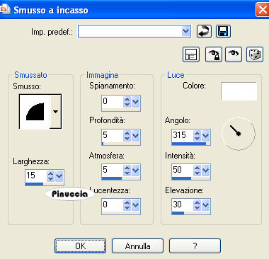 qui puoi trovare qualche risposta ai tuoi dubbi. Se l'argomento che ti interessa non è presente, ti prego di segnalarmelo. Occorrente: Materiale qui Il tube dell'ibisco è di H©nne e quello della rosa di Juliette. Filtri: Greg's Factory Output II qui DSB Flux qui Imposta il colore di primo piano con #2E1B39, e il colore di sfondo con #A96EB2. Passa il colore di primo piano a Gradiente, con i seguenti settaggi: ![]() 1. Apri una nuova immagine trasparente 360 x 472 pixels, e riempila con il gradiente.2. Effetti>Plugins>DSB Flux - Linear Transmission: ![]() 3. Attiva lo strumento Forme predefinite ,e seleziona all22. se non hai questa forma, la trovi qui Traccia la forma partendo dall'angolo in alto a sinistra, fino all'angolo in basso a destra. Livelli>Converti in livello raster. 4. Attiva lo strumento Bacchetta magica ![]() ![]() e seleziona le parti scure. Assicurati che siano tutte selezionate. Livelli>Nuovo livello raster. 5. Riporta il colore di primo piano a Colore, e riempi le selezioni con il colore di primo piano.impostando lo strumento Riempimento in modalità "Nessuno", ti basterà un solo clic. Effetti>Plugins>Greg's Factory Output - Pool Shadow, con i seguenti settaggi: ![]() 6. Effetti>Effetti 3D>sfalsa ombra: ![]() Selezione>Nessuna selezione. Livelli>Unisci>Unisci tutto. 7. Immagine>Aggiungi bordatura, 1 pixel, simmetriche, con il colore di primo piano. Immagine>Aggiungi bordatura, 4 pixels, simmetriche, con il colore di sfondo. Seleziona questo bordo con la bacchetta magica ![]() Effetti>Effetti 3D>Smusso a incasso: ![]() 8. Selezione>Nessuna selezione. Duplica questa immagine usando sulla tastiera la combinazione di tasti shift(maiuscola)+D. Adesso hai due immagini uguali. Le chiamerò "immagine1" e "immagine2". 9. Apri il tube dell'ibisco "H©nne Photo Heank Hibiscus", e vai a Modifica>Copia. Apri "Immagine1" e vai a Modifica>Incolla>Incolla come nuovo livello. Effetti>Effetti 3D>Sfalsa ombra, con i settaggi usati al punto 6. Livelli>Unisci>Unisci tutto. Ed è pronta la prima immagine per lo script. 10. Apri il tube con la rosa "BC-erich-s-rose". Regola>Saturazione e tonalità>Viraggio: ![]() Modifica>Copia. Attiva "Immagine2" e vai a Modifica>Incolla>Incolla come nuovo livello. Effetti>Effetti 3D>Sfalsa ombra, con i settaggi precedenti. Livelli>Unisci>Unisci tutto. Ed ecco pronta la seconda immagine per lo script. Per realizzare lo script, oltre a queste, ti servirà anche una piccola immagine di sfondo. Per eseguire lo script Apri lo script di Jeannette che trovi qui, e segui i preliminari descritti alla fine di questo tutorial, fino all'inserimento dello sfondo-suono. Dopo aver inserito lo sfondo-suono, dovrai indicare allo script dove trovare le immagini. Clicca su Origine e identifica i punti di inserimento dei vari elementi dello script. Se hai messo tutti i file in una cartella, il percorso del suono ti servirà da guida per l'inserimento degli altri files: ti basterà cambiare l'ultima parte: il nome e l'estensione. Nella schermata sotto è indicato il punto in cui dovrai inserire, tra le virgolette, il percorso dell'immagine di sfondo. ![]() Nella schermata sotto è indicato il punto in cui dovrai inserire il percorso delle due immagini principali. 1. Qui inserisci il percorso dell'immagine con la rosa. 2. Qui inserisci il percorso dell'immagine con l'ibisco. ![]() Ricorda che, contemporaneamente, puoi controllare il risultato andando su Anteprima. fai molta attenzione alle estensioni dei files e alle maiuscole-minuscole, che devono essere corrette, altrimenti lo script non troverà le immagini da inserire Clicca adesso sulla linguetta Modifica, per aggiungere il testo. clicca due volte all'interno del riquadro. Apparirà la cornice che ti dà il via libera per sostituire il testo esistente e aggiungere il tuo. Quando hai finito, clicca all'esterno e la cornice sparirà. Il tuo messaggio con lo script è pronto per il tasto Invia. Se non vuoi spedirlo e vuoi soltanto tenerlo per te, vai a File>Salva con nome e mettilo in una cartella a tua scelta. Ricordati, però, che quando vorrai rivedere lo script, i files devono trovarsi nello stesso posto. Se nel frattempo li avrai spostati, vedrai soltanto delle crocette rosse. Avvertimento: non devi preoccuparti se in Modifica non vedrai il messaggio come dovrebbe essere (per fare questo devi andare in Anteprima). Ricorda ancora che per inviare il messaggio ti devi posizionare su Modifica. ![]() Se hai problemi o dubbi, o trovi un link non funzionante, o anche soltanto per dirmi che ti è piaciuto, scrivimi. 21 Aprile 2008 |