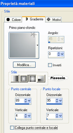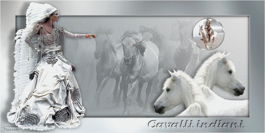 qui puoi trovare qualche risposta ai tuoi dubbi. Se l'argomento che ti interessa non è presente, ti prego di segnalarmelo. Occorrente: Materiale qui I tubes sono di Suzi Sgai, Saphiera e Marcio. Non aprire Amazone-rond in PSP. Ti servirà, se vorrai realizzarlo, per lo script. Filtri: Greg's Factory Output II qui Imposta il colore di primo piano con #E4E2E1, e il colore di sfondo con #859094. Passa il colore di primo piano a Gradiente di primo piano/sfondo con i seguenti settaggi. ![]() 1. Apri una nuova immagine trasparente 900 x 450 pixels, e riempila con il gradiente.2. Selezione>Seleziona tutto. Selezione>Modifica>Contrai - 50 pixels. 3. Selezione>Inverti. 4. Livelli>Nuovo livello raster. Riempi con il gradiente.5. Immagine>Rifletti. 6. Effetti>Plugins>Greg's Factory - Poolshadow: ![]() 7. Effetti>Effetti 3D>Sfalsa ombra, con i seguenti settaggi, colore bianco: ![]() Ripeti l'Effetto Sfalsa ombra cambiando verticale e orizzontale con -2. 8. Selezione>Innalza selezione a livello. 9. Effetti>Effetti 3D>sfalsa ombra, con i seguenti settaggi, colore nero: ![]() Ripeti l'Effetto Sfalsa ombra, cambiando verticale e orizzontale con -2. 10. Selezione>Nessuna selezione. 11. Nella paletta dei livelli attiva il livello Raster 1. 12. Effetti>Effetti di bordo>Aumenta di più (nel mio esempio ho ripetuto questo passaggio). 13. Apri il tube con il gruppo di cavalli (mc672), e vai a Modifica>Copia. Torna al tuo lavoro e vai a Modifica>Incolla>Incolla come nuovo livello. Cambia la modalità di miscelatura di questo livello in Luminanza, e abbassa l'opacità al 63%. 14. Apri il tube con il cavallo bianco (Saphiere horse). Regola>Messa a fuoco>Metti a fuoco. Modifica>Copia. Torna al tuo lavoro e vai a Modifica>Incolla>Incolla come nuovo livello. Sposta il cavallo nell'angolo in basso a destra.15. Livelli>Duplica. Immagine>Rifletti. 16. Posiziona il cavallo sopra il precedente.17. Nella paletta dei livelli lascia i livelli di questi due cavalli sotto il livello del bordo. ![]() 18. Effetti>Effetti 3D>Sfalsa ombra: ![]() 19. Ripeti l'Effetto Sfalsa ombra sul livello del secondo cavallo. 20. Livelli>Unisci>Unisci visibile. 21. Apri il tube con la donna (SS 1142), e vai a Modifica>Copia. Torna al tuo lavoro e vai a Modifica>Incolla>Incolla come nuovo livello. Spostalo a sinistra.22. Effetti>Effetti 3D>sfalsa ombra: ![]() 23. Ripeti l'Effetto Sfalsa ombra, con i seguenti settaggi: ![]() 24. Regola>Messa a fuoco>Metti a fuoco. Livelli>Unisci>Unisci tutto. 25. Immagine>Aggiungi bordatura, 1 pixel, simmetriche, con il colore bianco. 26. Attiva lo strumento Testo , crea come vettore, e scrivi un testo.Livelli>Converti in livello raster. Effetti>Effetti 3D>Sfalsa ombra: ![]() Regola>Messa a fuoco>Metti a fuoco. 27. Livelli>Unisci>Unisci tutto. L'immagine è finita. Se vorrai realizzare lo script, ti serviranno anche 3 immagini di sfondo e la gif che hai trovato nello zip: amazone rond. Per eseguire lo script Apri lo script di Jeannette che trovi qui, e segui i preliminari descritti alla fine di questo tutorial, fino all'inserimento dello sfondo-suono. Dopo aver inserito lo sfondo-suono, dovrai indicare allo script dove trovare le immagini. Clicca su Origine e identifica i punti di inserimento dei vari elementi dello script. Se hai messo tutti i file in una cartella, il percorso del suono ti servirà da guida per l'inserimento degli altri files: ti basterà cambiare l'ultima parte: il nome e l'estensione. Nella schermata sotto è indicato il punto in cui dovrai inserire il percorso delle tre immagini di sfondo. 1. Qui inserisci il percorso della prima immagine di sfondo. 2. Qui inserisci il percorso della seconda immagine di sfondo 2. Qui inserisci il percorso dello sfondo argento, che servirà per le tabelle laterali. ![]() Nella schermata sotto sono indicati i due punti in cui dovrai inserire: 1. il percorso dell'immagine principale, 2. il percorso della gif "amazone-rond": ![]() Ricorda che, contemporaneamente, puoi controllare il risultato andando su Anteprima. fai molta attenzione alle estensioni dei files e alle maiuscole-minuscole, che devono essere corrette, altrimenti lo script non troverà le immagini da inserire Clicca adesso sulla linguetta Modifica, per aggiungere il testo. clicca due volte all'interno del riquadro. Apparirà la cornice che ti dà il via libera per sostituire il testo esistente e aggiungere il tuo. Quando hai finito, clicca all'esterno e la cornice sparirà. Il tuo messaggio con lo script è pronto per il tasto Invia. Se non vuoi spedirlo e vuoi soltanto tenerlo per te, vai a File>Salva con nome e mettilo in una cartella a tua scelta. Ricordati, però, che quando vorrai rivedere lo script, i files devono trovarsi nello stesso posto. Se nel frattempo li avrai spostati, vedrai soltanto delle crocette rosse. Avvertimento: non devi preoccuparti se in Modifica non vedrai il messaggio come dovrebbe essere (per fare questo devi andare in Anteprima). Ricorda ancora che per inviare il messaggio ti devi posizionare su Modifica. ![]() Se hai problemi o dubbi, o trovi un link non funzionante, o anche soltanto per dirmi che ti è piaciuto, scrivimi. 14 Giugno 2008 |