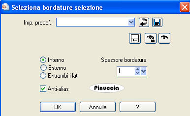 qui puoi trovare qualche risposta ai tuoi dubbi. Se l'argomento che ti interessa non è presente, ti prego di segnalarmelo. Per tradurre questo tutorial ho usato PSP X. Occorrente: Materiale qui Il tube della donna è di Hans. Metti il pennello Tekst nella cartella Pennelli. Attenzione il pennello è composto da due files che non devono essere separati. Vedi gli appunti sui pennelli qui Filtri: Greg's Factory Output II qui L&K Zitah qui Mock qui Imposta il colore di primo piano con un motivo argento. se non hai un motivo argento clicca qui e il colore di sfondo con #3E293E. 1. Apri una nuova immagine trasparente 700 x 500 pixels, e riempila con il colore di sfondo.2. Effetti>Plugins>Greg's Factory - Pool Shadow, con i seguenti settaggi: ![]() 3. Effetti>Plugins>Mock - Mosaic: ![]() 4. Effetti>Effetti di bordo>Aumenta. 5. Attiva lo strumento Bacchetta magica ![]() ![]() e seleziona i quattro blocchi indicati dalle manine: ![]() 6. Effetti>Plugins>Greg's Factory - Pool Shadow, con i seguenti settaggi: ![]() 7. Modifica>Copia. Modifica>Incolla come nuovo livello. Selezione>Deseleziona. 8. Sposta i blocchi più in basso in linea con i precedenti.9. Effetti>Plugins>L&K - Zitah: ![]() 10. Effetti>Effetti di distorsione>Onda: ![]() 11. Effetti>Effetti 3D>Sfalsa ombra: ![]() Ripeti l'Effetto Sfalsa ombra, cambiando verticale e orizzontale con -5. 12. Attiva il livello inferiore. 13 Seleziona con la bacchetta magica gli altri blocchi delle due linee inferiori.14. Effetti>Effetti di trama>Veneziana: ![]() 15. Selezione>Deseleziona. Livelli>Unisci>Unisci visibile. 16. Selezione>Seleziona tutto. Selezione>Modifica>Contrai - 30 pixels. Selezione>Inverti. 17. Modifica>Copia. Modifica>Incolla come nuovo livello. 18. Immagine>Capovolgi. 19. Selezione>Innalza selezione a livello. Abbassa l'opacità di questo livello al 50%. ![]() Mantieni ancora selezionato. 20. Livelli>Unisci>Unisci visibile. 21. Selezione>Modifica>Seleziona bordature selezione: ![]() 22. Livelli>Nuovo livello raster. Riempi con il motivo argento.Impostando modalità di corrispondenza Nessuno riempirai entrambi i bordini con un solo clic. ![]() 23. Selezione>Deseleziona. Livelli>Unisci>Unisci visibile. 24, Apri il tube della donna. Nascondi il livello del watermark per poter vedere meglio quello che dovrai fare. 25. Attiva lo strumento Selezione , rettangolo,e traccia una selezione della parte superiore della donna, pressappoco come nell'esempio: ![]() 26. Modifica>Copia. Modifica>Incolla come nuova IMMAGINE. 27. Livelli>Nuovo livello raster. Riempi con il colore di sfondo.28. Effetti>Plugins>Greg's Factory - Poolshadow: ![]() 29. Livelli>Disponi>Porta sotto. Attiva il livello superiore. Effetti>Effetti 3D>Sfalsa ombra: ![]() Ripeti l'Effetto Sfalsa ombra cambiando verticale e orizzontale con -5. 31. Livelli>Unisci>Unisci tutto. 32. Selezione>Seleziona tutto. Selezione>Modifica>Contrai - 10 pixels. 33. Selezione>Inverti. Livelli>Nuovo livello raster. Riempi con il colore di primo piano.34. Effetti>Plugins>Greg's Factory - Pool Shadow: ![]() 35. Selezione>Deseleziona. 36. Effetti>Plugins>L&K - Zitah, con i settaggi precedenti. Regola>Messa a fuoco>Metti a fuoco. 37. Effetti>Effetti 3D>Smusso a incasso: ![]() 38. Livelli>Unisci>Unisci tutto. 39. Modifica>Copia. 40. Torna al tuo lavoro e vai a Modifica>Incolla come nuovo livello. 41. Attiva lo strumento Puntatore o premi sulla tastiera il tasto D.Vedrai l'immagine circondata dalla griglia dello strumento. ![]() 42. Clicca con il mouse sul piccolo quadretto in basso a sinistra: ![]() 43. Tenendo premuto il tasto ctrl sposta il blocco verso l'alto. Tenere premuto il tasto ctrl farà spostare contemporaneamente verso il basso l'angolo superiore. ![]() 44. Eventualmente, se la donna non è ben visibile: Regola>Messa a fuoco>Metti a fuoco, 1 o due volte. 45. Effetti>Effetti 3D>Sfalsa ombra: ![]() Ripeti l'Effetto Sfalsa ombra, cambiando verticale e orizzontale con -5. 46. Chiudi il colore di sfondo e mantieni il motivo argento come colore di primo piano. 47. Attiva lo strumento Penna ![]() ![]() 48. Traccia due linee sopra l'immagine come nell'esempio: ![]() Livelli>Converti in livello raster. 49. Regola>Messa a fuoco>Metti a fuoco, 1 o 2 volte. 50. Apri il tube steentje e vai a Modifica>Copia. Torna al tuo lavoro e vai a Modifica>Incolla come nuovo livello. Spostalo al centro delle due linee.Regola>Messa a fuoco>Metti a fuoco. 51. Attiva nuovamente il tube della donna e togli la precedente selezione: Selezione>Deseleziona. Immagine>Rifletti. Immagine>Ridimensiona, a 500 pixels di altezza. 52. Modifica>Copia. Torna al tuo lavoro e vai a Modifica>Incolla come nuovo livello. Sposta il tube a sinistra.53. Effetti>Effetti 3D>Sfalsa ombra, con i seguenti settaggi: ![]() Ripeti l'Effetto Sfalsa ombra, con i seguenti settaggi: ![]() 54. Livelli>Unisci>Unisci tutto. Livelli>Nuovo livello raster. 55. Attiva lo strumento Pennello ![]() cerca e seleziona il pennello tekst, dimensione 250: ![]() 56. Applica il pennello sotto il quadro cliccando con il tasto sinistro del mouse per usare il motivo argento. 57. Effetti>Effetti 3D>Sfalsa ombra: ![]() Regola>Messa a fuoco>Metti a fuoco, 2 volte. 58. Se necessario, puoi spostare il pennello per sistemarlo meglio.59. Livelli>Unisci>Unisci tutto. L'immagine è finita. Se vuoi realizzare lo script ti occorrono anche tre immagini di sfondo, Per eseguire lo script Apri lo script di Jeannette che trovi qui, e segui i preliminari descritti alla fine di questo tutorial, fino all'inserimento dello sfondo-suono. Dopo aver inserito lo sfondo-suono, dovrai indicare allo script dove trovare le immagini. Clicca su Origine e identifica i punti di inserimento dei vari elementi dello script. Se hai messo tutti i file in una cartella, il percorso del suono ti servirà da guida per l'inserimento degli altri files: ti basterà cambiare l'ultima parte: il nome e l'estensione. Nella schermata sotto è indicato il punto in cui dovrai inserire il percorso delle tre immagini di sfondo. 