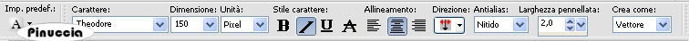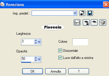 qui puoi trovare qualche risposta ai tuoi dubbi. Se l'argomento che ti interessa non è presente, ti prego di segnalarmelo. Occorrente: Materiale qui Il tube della rosa è di Nightangel, il resto del materiale è di Jeannette. Non aprire la gif della rosa in PSP, ti servirà se vorrai realizzare lo script. Apri il font e minimizzalo nella tua area di lavoro. Lo troverai nella lista dei font disponibili quando ti servirà. Imposta il colore di primo piano con il colore nero #602832, e il colore di sfondo con #DFD7D9. 1. Apri una nuova immagine trasparente 600 x 450 pixels, e riempila con il colore di sfondo.2. Effetti>Effetti di trama>Veneziana, con i seguenti settaggi: ![]() 3. Apri il tube con il fiore "loveletters misted na", e vai a Modifica>copia. Torna al tuo lavoro e vai a Modifica>Incolla come nuovo livello. Spostalo a destra.Regola>Messa a fuoco>Metti a fuoco. 4. Apri il tube "nicole kidman2 jean", e vai a Modifica>copia. Torna al tuo lavoro e vai a Modifica>Incolla come nuovo livello. Spostalo a sinistra.Abbassa l'opacità di questo livello al 42%. Livelli>Unisci>Unisci tutto. 5. Chiudi il colore di sfondo, e imposta il colore di primo piano con un motivo argento. se non ce l'hai, clicca qui 6. Attiva lo strumento Testo , font Theodore,dimensione 150, corsivo, e scrivi in alto a destra "Love". ![]() dovrai adattare la dimensione se stai usando PSP 9, perchè i pixels nelle due versioni non corrispondono. Su queste differenze vedi qui Livelli>Converti in livello raster. 7. In basso a sinistra scrivi "Letters". Livelli>Converti in livello raster. 8. Apri il colore di primo piano e imposta il colore di sfondo con il motivo argento. Cambia la dimensione del font e togli il corsivo: ![]() In alto a destra scrivi nuovamente "Love". Livelli>Converti in livello raster. Effetti>Effetti 3D>Sfalsa ombra: ![]() Regola>Messa a fuoco>Metti a fuoco. 9. In basso a sinistra scrivi "Letters". Livelli>Converti in livello Raster. Effetti>Effetti 3d>Sfalsa ombra, con i settaggi precedenti. Regola>Messa a fuoco>Metti a fuoco. Livelli>Unisci>Unisci tutto. 10. Immagine>Aggiungi bordatura, 1 pixel, simmetriche, con il colore di primo piano. Immagine>Aggiungi bordatura, 3 pixels, simmetriche, con il colore di sfondo. Immagine>Aggiungi bordatura, 1 pixel, simmetriche, coni l colore di primo piano. L'immagine è finita. Se vuoi realizzare lo script, ti occorrono anche due immagini di sfondo, e la gif "rode roos", che hai trovato nello zip. Per eseguire lo script Apri lo script di Jeannette che trovi qui, e segui i preliminari descritti alla fine di questo tutorial, fino all'inserimento dello sfondo-suono. Dopo aver inserito lo sfondo-suono, dovrai indicare allo script dove trovare le immagini. Clicca su Origine e identifica i punti di inserimento dei vari elementi dello script. Se hai messo tutti i file in una cartella, il percorso del suono ti servirà da guida per l'inserimento degli altri files: ti basterà cambiare l'ultima parte: il nome e l'estensione. Nella schermata sotto sono indicati i punti in cui dovrai inserire il percorso delle due immagini di sfondo. 1. Qui è indicato il punto in cui inserire il percorso del primo sfondo. 2. Qui è indicato il punto in cui inserire il percorso del secondo sfondo che servirà per le tabelle laterali. ![]() Nella schermata è indicato il punto in cui dovrai inserire il percorso dell'immagine principale e della gif "rode ros". 1. Immagine principale. 2. Rode Rose (non dimenticare che l'estensione è .gif). ![]() Ricorda che, contemporaneamente, puoi controllare il risultato andando su Anteprima. fai molta attenzione alle estensioni dei files e alle maiuscole-minuscole, che devono essere corrette, altrimenti lo script non troverà le immagini da inserire Clicca adesso sulla linguetta Modifica, per aggiungere il testo. clicca due volte all'interno del riquadro. Apparirà la cornice che ti dà il via libera per sostituire il testo esistente e aggiungere il tuo. Quando hai finito, clicca all'esterno e la cornice sparirà. Il tuo messaggio con lo script è pronto per il tasto Invia. Se non vuoi spedirlo e vuoi soltanto tenerlo per te, vai a File>Salva con nome e mettilo in una cartella a tua scelta. Ricordati, però, che quando vorrai rivedere lo script, i files devono trovarsi nello stesso posto. Se nel frattempo li avrai spostati, vedrai soltanto delle crocette rosse. Avvertimento: non devi preoccuparti se in Modifica non vedrai il messaggio come dovrebbe essere (per fare questo devi andare in Anteprima). Ricorda ancora che per inviare il messaggio ti devi posizionare su Modifica. ![]() Se hai problemi o dubbi, o trovi un link non funzionante, o anche soltanto per dirmi che ti è piaciuto, scrivimi. 1 Maggio 2008 |