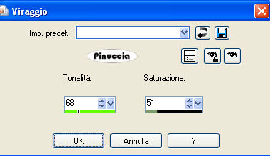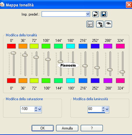 23. Regola>Tonalità e saturazione>Viraggio, con i seguenti settaggi: