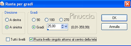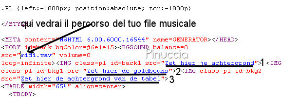 qui puoi trovare qualche risposta ai tuoi dubbi. Se l'argomento che ti interessa non è presente, ti prego di segnalarmelo. Occorrente: Materiale qui I tubes usati sono di Yoka, Rosenmaiden e VI. Fai una copia del motivo goldbeans e mettilo nella cartella dei motivi di PSP. L'originale ti servirà per realizzare lo script. Apri il colore di primo piano con #581D17, e il colore di sfondo con #7B2319. Passa il colore di primo piano a Gradiente di primo piano/sfondo, con i seguenti settaggi. ![]() 1. Apri una nuova immagine trasparente 550 x 450 pixels, e riempila con il gradiente.2. Effetti>effetti di bordo>Aumenta di più, 2 volte. 3. Apri il tube con la donna e vai a Modifica>copia. Torna al tuo lavoro e vai a Modifica>Incolla come nuovo livello. 4. Apri il tube con il bicchiere e vai a Modifica>copia. Torna al tuo lavoro e vai a Modifica>Incolla come nuovo livello. 5. Effetti>Effetti 3D>sfalsa ombra, con i seguenti settaggi. ![]() 6. Livelli>Duplica. Immagine>Ridimensiona, all'80%, tutti i livelli non selezionato. Effetti>Effetti 3D>Sfalsa ombra, con i settaggi precedenti. Posiziona i due bicchieri in basso, vedi il mio esempio. 7. Apri il tube con la borsetta, e vai a Modifica>copia. Torna al tuo lavoro e vai a Modifica>Incolla come nuovo livello. Immagine>Ruota>ruota per gradi - 25 gradi a sinistra: ![]() 8. Chiudi il colore di primo piano e imposta il colore di sfondo con un motivo oro, (non quello fornito con il tutorial): se vuoi usare il mio qui Attiva lo strumento Testo e scrivi il tuo testo.Effetti>Effetti 3D>Sfalsa ombra, con i settaggi precedenti. per il mio testo ho usato il font Incarnation 9. Livelli>Unisci>Unisci tutto. 10. Immagine>Aggiungi bordatura, 3 pixels, simmetriche, con il colore nero. Seleziona il bordo con la bacchetta magica ![]() ![]() Riempi il bordo con il motivo oro.Regola>Messa a fuoco>Metti a fuoco. Selezione>Deseleziona. L'immagine è finita. Se vuoi realizzare lo script di Jeannette, ti servono anche due immagini di sfondo, e il motivo oro Goldbeans. Per eseguire lo script Apri lo script di Jeannette che trovi qui, e segui i preliminari descritti alla fine di questo tutorial, fino all'inserimento dello sfondo-suono. Dopo aver inserito lo sfondo-suono, dovrai indicare allo script dove trovare le immagini. Clicca su Origine e identifica i punti di inserimento dei vari elementi dello script. Se hai messo tutti i file in una cartella, il percorso del suono ti servirà da guida per l'inserimento degli altri files: ti basterà cambiare l'ultima parte: il nome e l'estensione. Nella schermata sotto sono indicati i punti in cui dovrai inserire, tra le virgolette, il percorso delle due immagini di sfondo, 1. Qui inserisci il percorso del primo sfondo. 2. Qui inserisci il percorso del motivo oro Goldbeans. 3. Qui inserisci il percorso del secondo sfondo. ![]() Nella schermata sotto è indicato il punto in cui dovrai inserire il percorso dell'immagine principale. ![]() Ricorda che, contemporaneamente, puoi controllare il risultato andando su Anteprima. fai molta attenzione alle estensioni dei files e alle maiuscole-minuscole, che devono essere corrette, altrimenti lo script non troverà le immagini da inserire Clicca adesso sulla linguetta Modifica, per aggiungere il testo. clicca due volte all'interno del riquadro. Apparirà la cornice che ti dà il via libera per sostituire il testo esistente e aggiungere il tuo. Quando hai finito, clicca all'esterno e la cornice sparirà. Il tuo messaggio con lo script è pronto per il tasto Invia. Se non vuoi spedirlo e vuoi soltanto tenerlo per te, vai a File>Salva con nome e mettilo in una cartella a tua scelta. Ricordati, però, che quando vorrai rivedere lo script, i files devono trovarsi nello stesso posto. Se nel frattempo li avrai spostati, vedrai soltanto delle crocette rosse. Avvertimento: non devi preoccuparti se in Modifica non vedrai il messaggio come dovrebbe essere (per fare questo devi andare in Anteprima). Ricorda ancora che per inviare il messaggio ti devi posizionare su Modifica. ![]() Se hai problemi o dubbi, o trovi un link non funzionante, o anche soltanto per dirmi che ti è piaciuto, scrivimi. 19 Novembre 2007 |
