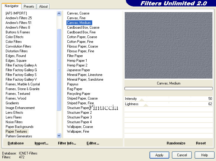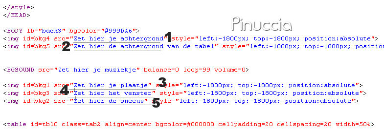 qui puoi trovare qualche risposta ai tuoi dubbi. Se l'argomento che ti interessa non è presente, ti prego di segnalarmelo. Occorrente: Materiale qui Ti servirà anche la maschera 20-20. Se non ce l'hai clicca qui il tube della finestra è di Janet, non conosco l'autore dell'immagine. Attenzione: non aprire sneeuw.gif in PSP: la gif serve per lo script. Filtro: Filters Unlimited 2.0 qui Imposta il colore di primo piano con #7D828D. 1. Apri una nuova immagine trasparente 500 x 380 pixels, e riempila con il colore di primo piano.2. Effetti>Plugins>Filters Unlimited 2.0 - Paper Textures - Canvas Medium, con i seguenti settaggi: ![]() 3. Apri l'immagine del paesaggio: tk2y1-09b-memchristmas. Livelli>Carica/Salva maschera>Carica maschera da disco, cerca e carica la maschera 20-20. ![]() Livelli>Elimina, e rispondi sì alla domanda Unire la maschera nel livello corrente. ![]() Livelli>Unisci>Unisci gruppo. 4. Modifica>Copia. Torna al tuo lavoro e vai a Modifica>Incolla>Incolla come nuovo livello. Livelli>Unisci>Unisci visibile. L'immagine (che servirà da sfondo per la finestra) è finita. Salva in formato jpg. 5. Apri il tube della finestra WhitewashWindow. Immagine>Ridimensiona, a 600 x 440 pixels, mantieni proporzioni non selezionato. ![]() Regola>Messa a fuoco>Metti a fuoco. Salva l'immagine in formato .gif. Come fare vedi qui Queste sono le immagini principali per realizzare lo script di Jeannette. Oltre a queste, ti occorrerà la gif della neve, che hai trovato nello zip (sneeuw1.gif), e due immagini di sfondo. Per la prima apri un'immagine 150x150 con un colore chiaro e applica un effetto trama a tua scelta. Per la seconda apri un'immagine 150x150 con un colore scuro, e aggiungi delle stelle a caso. Per eseguire lo script Apri lo script di Jeannette che trovi qui, e segui i preliminari descritti alla fine di questo tutorial, fino all'inserimento dello sfondo-suono. Dopo aver inserito lo sfondo-suono, dovrai indicare allo script dove trovare le immagini. Clicca su Origine e identifica i punti di inserimento dei vari elementi dello script. Se hai messo tutti i file in una cartella, il percorso del suono ti servirà da guida per l'inserimento degli altri files: ti basterà cambiare l'ultima parte: il nome e l'estensione. Nella schermata sotto sono indicati i punti in cui dovrai inserire, tra le virgolette, il percorso delle varie immagini: 1. Qui inserisci il percorso dell'immagine di sfondo. 2. Qui inserisci l'immagine con le stelline, che servirà per le tabelle. 3. Qui inserisci l'immagine del paesaggio invernale. 4. Qui inserisci la finestra (attenzione, ricordati che l'estensione di questo file è .gif). 5. Qui inserisci la gif della neve. ![]() Ricorda che, contemporaneamente, puoi controllare il risultato andando su Anteprima. fai molta attenzione alle estensioni dei files e alle maiuscole-minuscole, che devono essere corrette, altrimenti lo script non troverà le immagini da inserire Clicca adesso sulla linguetta Modifica, per aggiungere il testo. clicca due volte all'interno del riquadro. Apparirà la cornice che ti dà il via libera per sostituire il testo esistente e aggiungere il tuo. Quando hai finito, clicca all'esterno e la cornice sparirà. Il tuo messaggio con lo script è pronto per il tasto Invia. Se non vuoi spedirlo e vuoi soltanto tenerlo per te, vai a File>Salva con nome e mettilo in una cartella a tua scelta. Ricordati, però, che quando vorrai rivedere lo script, i files devono trovarsi nello stesso posto. Se nel frattempo li avrai spostati, vedrai soltanto delle crocette rosse. Avvertimento: non devi preoccuparti se in Modifica non vedrai il messaggio come dovrebbe essere (per fare questo devi andare in Anteprima). Ricorda ancora che per inviare il messaggio ti devi posizionare su Modifica. ![]() Se hai problemi o dubbi, o trovi un link non funzionante, o anche soltanto per un saluto, scrivimi. 6 Novembre 2007 |