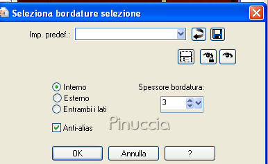 qui puoi trovare qualche risposta ai tuoi dubbi. Se l'argomento che ti interessa non è presente, ti prego di segnalarmelo. Occorrente: Materiale qui La foto viene da Internet. Imposta il colore di primo piano con #6C1501, e il colore di sfondo con un motivo oro. Se vuoi usare il mio clicca qui 1. Apri la foto fornita con il tutorial (se vuoi, puoi anche usare una delle tue). Attiva lo strumento Selezione , Stella 2, standard di PSP, vedi la schermata sotto.![]() 2. Traccia una stella, iniziando dall'angolo in alto a sinistra (a pochi millimetri dal bordo), fino all'angolo in basso a destra. 3. Modifica>Copia Modifica>Incolla>Incolla come nuova IMMAGINE. Avrai questo: ![]() 4. Attiva lo strumento Bacchetta magica ![]() e clicca sullo sfondo trasparente tenendo premuto il tasto della maiuscola, in modo che siano selezionati tutti i blocchi. Se imposti la bacchetta magica in modalità Aggiungi ![]() non sarà necessario tenere premuto il tasto della maiuscola. 5. Selezione>inverti. Selezione>modifica>Seleziona bordature selezione: ![]() 6. Livelli>Nuovo livello raster. Riempi con il motivo oro.ricorda che è impostato come colore di sfondo e, per riempire, devi cliccare con il tasto destro del mouse. Selezione>Nessuna selezione. Livelli>Unisci>Unisci visibile. 7. Livelli>Nuovo livello raster. Riempi con il colore di primo piano.Nella paletta dei livelli sposta il livello inferiore in cima ai livelli. 8. Effetti>Effetti 3D>Sfalsa ombra: ![]() Ripeti l'Effetto Sfalsa ombra, ma cambiando verticale e orizzontale a -3. 9. Immagine>Aggiungi bordatura, 3 pixels, simmetriche, con il colore bianco. Seleziona il bordo bianco con la bacchetta magica ![]() ![]() e riempilo con il motivo oro.Selezione>Nessuna selezione. 10. Chiudi il colore di primo piano. Attiva lo strumento Testo ,e scrivi il tuo testo nei blocchi esterni alla stella. per il mio testo ho usato il font Bickham Script Fancy 2 Applica l'Effetto Sfalsa ombra, con i settaggi precedenti e, se vuoi, metti a fuoco (Regola>Messa a fuoco>Metti a fuoco). 11. Jeannette ha realizzato lo script su una immagine di 556x511 pixels. se vuoi realizzare lo script, devi mantenere questo formato. Immagine>Ridimensiona, e ridimensiona togliendo la spunta a Mantieni proporzioni. ![]() L'immagine è finita. Per realizzare lo script ti occorrono anche due immagini di sfondo. Per eseguire lo script Apri lo script di Jeannette che trovi qui, e segui i preliminari descritti alla fine di questo tutorial, fino all'inserimento dello sfondo-suono. Dopo aver inserito lo sfondo-suono, dovrai indicare allo script dove trovare le immagini. Clicca su Origine e identifica i punti di inserimento dei vari elementi dello script. Se hai messo tutti i file in una cartella, il percorso del suono ti servirà da guida per l'inserimento degli altri files: ti basterà cambiare l'ultima parte: il nome e l'estensione. Nella schermata sotto sono indicati i punti in cui dovrai inserire, tra le virgolette, il percorso delle due immagini di sfondo, 1. Qui inserisci il primo sfondo. 2. Qui inserisci il secondo sfondo. in questo script i due sfondi sono entrambi rossi, uno più scuro dell'altro. ![]() Nella schermata sotto è indicato il punto in cui dovrai inserire il percorso dell'immagine principale. ![]() Ricorda che, contemporaneamente, puoi controllare il risultato andando su Anteprima. fai molta attenzione alle estensioni dei files e alle maiuscole-minuscole, che devono essere corrette, altrimenti lo script non troverà le immagini da inserire Clicca adesso sulla linguetta Modifica, per aggiungere il testo. clicca due volte all'interno del riquadro. Apparirà la cornice che ti dà il via libera per sostituire il testo esistente e aggiungere il tuo. Quando hai finito, clicca all'esterno e la cornice sparirà. Il tuo messaggio con lo script è pronto per il tasto Invia. Se non vuoi spedirlo e vuoi soltanto tenerlo per te, vai a File>Salva con nome e mettilo in una cartella a tua scelta. Ricordati, però, che quando vorrai rivedere lo script, i files devono trovarsi nello stesso posto. Se nel frattempo li avrai spostati, vedrai soltanto delle crocette rosse. Avvertimento: non devi preoccuparti se in Modifica non vedrai il messaggio come dovrebbe essere (per fare questo devi andare in Anteprima). Ricorda ancora che per inviare il messaggio ti devi posizionare su Modifica. ![]() Se hai problemi o dubbi, o trovi un link non funzionante, o anche soltanto per dirmi che ti è piaciuto, scrivimi. 19 Novembre 2007 |