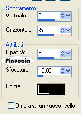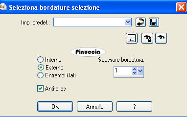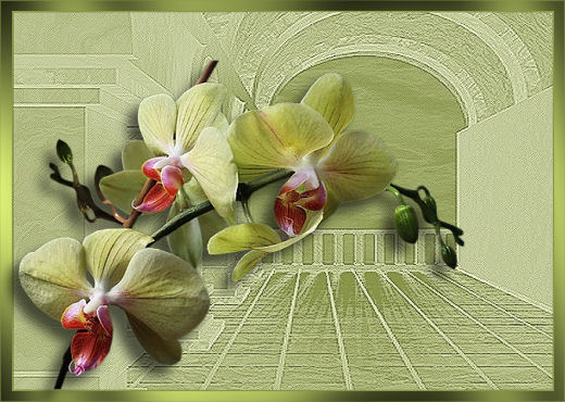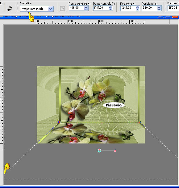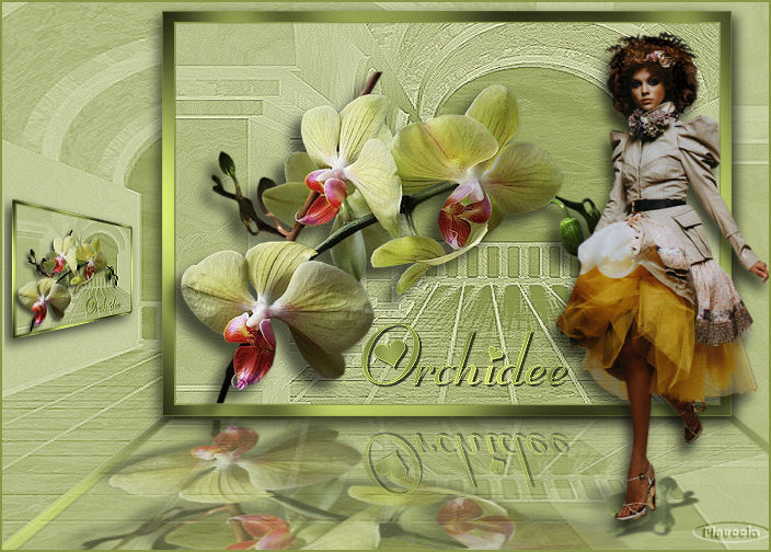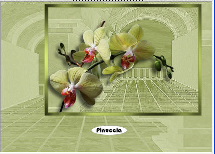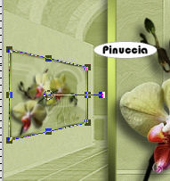 qui puoi trovare qualche risposta ai tuoi dubbi. Se l'argomento che ti interessa non è presente, ti prego di segnalarmelo. Occorrente: Materiale qui I tubes sono di Ann, il pennello è di Jeannette. Metti il pennello nella cartella Pennelli. Attenzione, il pennello è composto da due files che non devono essere separati. Vedi gli appunti sui pennelli qui Filtri: Greg's Factory Output II qui. Imposta il colore di primo piano con #D0D6AC, e il colore di sfondo con #899549. 1. Apri una nuova immagine trasparente 500 x 350 pixels, e riempila con il colore di sfondo.2. Attiva lo strumento Pennello ![]() cerca e seleziona il pennello Arcade met lucht, e applicalo esattamente al centro dell'immagine, cliccando con il tasto sinistro del mouse per usare il colore di primo piano. 3. Regola>Messa a fuoco>Metti a fuoco, 5 volte. 4. Immagine>Aggiungi bordatura, 10 pixels, simmetriche, con il colore di sfondo. Seleziona questo bordo con la bacchetta magica ![]() ![]() 5. Effetti>Plugins>Greg's Factory Output II - Poolshadow, con i settaggi standard. ![]() 6. Selezione>Modifica>Seleziona bordature selezione: ![]() 7. Livelli>Nuovo livello raster. Riempi con il colore di sfondo, cliccando nel bordino selezionato.se hai difficoltà, a causa dello spazio ristretto, allarga l'immagine usando la rotellina del mouse 8. Selezione>Deseleziona. 9. Apri il tube delle orchidee. Immagine>Ridimensiona, a 400 pixels di larghezza. Modifica>Copia. Torna al tuo lavoro e vai a Modifica>Incolla come nuovo livello. Posiziona i fiori contro il bordo inferiore e a sinistra.10. Effetti>Effetti 3D>Sfalsa ombra, con i seguenti settaggi. ![]() Regola>Messa a fuoco>Metti a fuoco. 11. Livelli>Unisci>Unisci tutto, e metti da parte questa immagine. ![]() 12. Apri una nuova immagine trasparente 500 x 450 pixels, e riempila con il colore di sfondo.13. Attiva lo strumento Pennello ![]() e applica il pennello Arcade esattamente al centro dell'immagine, sempre cliccando con il tasto sinistro del mouse per usare il colore di primo piano. 14. Immagine>Ridimensiona, a 700 pixels di larghezza e 500 pixels di altezza, mantieni proporzioni non selezionato. ![]() 15. Immagine>Rifletti. Regola>Messa a fuoco>Metti a fuoco, 4 o 5 volte. 16. Attiva l'immagine che hai messo da parte al punto 11 e vai a Modifica>copia. non chiuderla, perchè ti servirà ancora. Torna al tuo lavoro - l'immagine più grande 500 x 450 px - e vai a Modifica>Incolla come nuovo livello. Posiziona l'immagine in alto a destra, pressappoco come nel mio esempio.![]() 17. Livelli>Duplica. Immagine>Capovolgi. Sposta l'immagine capovolta in basso (te ne occuperai tra poco).18. Attiva il livello originale. 19. Effetti>Effetti 3D>Sfalsa ombra, con i seguenti settaggi: ![]() Ripeti Effetti>Effetti 3D>Sfalsa ombra, con questi settaggi. ![]() 20. Attiva il livello superiore (il duplicato capovolto). 21. Sposta questa immagine contro l'originale.22. Premi sulla tastiera il tasto D. Questo attiverà lo strumento Puntatore automaticamente in modalità Prospettiva. 23. Porta gli angoli all'esterno dei bordi, per ottenere una prospettiva pressappoco simile all'esempio. ![]() 24. Se necessario, sposta l'immagine in modo che combaci con quella superiore. ![]() 25. Per liberarti della griglia dello strumento clicca sulla manina ![]() e questo dovrebbe essere il risultato. ![]() 26. Nella paletta dei livelli abbassa l'opacità di questo livello intorno al 50%. 27. Livelli>Unisci>Unisci visibile. 28. Attiva lo strumento Testo .Per il mio esempio ho usato il font Fiolex Girls, dimensione 78, mobile: ![]() Scrivi il testo e posizionalo. 29. Effetti>Plugins>Greg's Factory Output II - Poolshadow, con i seguenti settaggi: ![]() 30. Selezione>Innalza selezione a livello. 31. Effetti>Effetti 3D>Sfalsa ombra, con i seguenti settaggi: ![]() Regola>Messa a fuoco>Metti a fuoco, 1 o 2 volte. Selezione>Deseleziona. 32. Modifica>Copia e Modifica>Incolla come nuova IMMAGINE (metti da parte questa immagine con il solo testo: ti servirà più tardi). 33. Torna al tuo lavoro e duplica il livello con il testo. 34. Immagine>Capovolgi, e sposta il testo in basso in modo che sembri riflesso.Abbassa l'opacità di questo livello intorno al 50%. 35. Apri il tube con la donna. Immagine>Ridimensiona, a 450 pixels di altezza (non dimenticare di rimettere la selezione su Mantieni proporzioni). 36. Modifica>Copia. Torna al tuo lavoro e vai a Modifica>Incolla come nuovo livello. Sposta la donna a destra.37. Il tutorial originale a questo punto suggerisce l'uso del cambio colore: ![]() Se stai usando PSP X lo trovi sotto il pennello: ![]() Clicca con il tasto destro del mouse sulla gonna della donna in modo che diventi verde, eventualmente ripeti più volte. se non vuoi cambiare colore alla gonna, vedi l'esempio in fondo al tutorial. 38. Effetti>Effetti 3D>Sfalsa ombra, con i seguenti settaggi. ![]() Livelli>Unisci>Unisci visibile. 39. Attiva la piccola immagine con il testo che hai messo da parte al punto 32 e vai a Modifica>Copia. 40. Attiva nuovamente l'immagine che hai messo da parte al punto 11 (e poi al punto 16) e vai a Modifica>Incolla come nuovo livello. Livelli>Unisci>Unisci visibile. 41. Immagine>Ridimensiona, a 100 pixels di larghezza, mantieni proporzioni selezionato. 42. Modifica>Copia. Torna al tuo lavoro e vai a Modifica>Incolla come nuovo livello. Sposta l'immagine a sinistra, sul muro.43. Premi nuovamente il tasto D sulla tastiera. ![]() 44. e allunga gli angoli a sinistra per dare prospettiva all'immagine. ![]() 45. Effetti>Effetti 3D>Sfalsa ombra, con i seguenti settaggi: ![]() Regola>Messa a fuoco>Metti a fuoco, 1 o 2 volte. 46. Livelli>Unisci>Unisci tutto. 47. Immagine>Aggiungi bordatura, 2 pixels, simmetriche, con il colore di sfondo. L'immagine è finita. Se vuoi realizzare lo script ti occorrono anche due immagini di sfondo. L'esempio senza cambiare il colore alla gonna. ![]() Per eseguire lo script Apri lo script di Jeannette che trovi qui, e segui i preliminari descritti alla fine di questo tutori