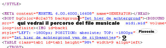 qui puoi trovare qualche risposta ai tuoi dubbi. Se l'argomento che ti interessa non è presente, ti prego di segnalarmelo. Occorrente: Materiale qui Il tube della coppia è di Crystal e la foto viene da Internet. Non aprire il tube di Cupido. Serve, se vorrai, per realizzare lo script. Filtri: Greg's Factory Output II qui Screenworks qui Imposta il colore di primo piano con #4B200D, e il colore di sfondo con un motivo oro. se non hai un motivo oro, clicca qui 1. Apri una nuova immagine trasparente 600 x 450 pixels, e riempila con il colore di primo piano.2. Apri la foto di Parigi. Selezione>Seleziona tutto. Selezione>Modifica>Contrai - 15 pixels. Selezione>inverti. 3. Effetti>Effetti 3D>Smusso a incasso, con i seguenti settaggi. ![]() 4. Selezione>Deseleziona. 5. Modifica>Copia. Torna al tuo lavoro e vai a Modifica>Incolla come nuovo livello. Sposta l'immagine completamente in alto.6. Attiva lo strumento Selezione , rettangolo,e traccia un rettangolo come nell'esempio: ![]() 7. Attiva il livello di sfondo. Effetti>Plugins>Screenworks - Block Tile. Regola>Messa a fuoco>Metti a fuoco. 8. Effetti>Effetti 3D>Smusso a incasso, con i settaggi precedenti. Selezione>Deseleziona. Livelli>Unisci>Unisci tutto. 9. Attiva lo strumento Bacchetta magica ![]() e seleziona la parte inferiore marrone. Effetti>Plugins>Greg's Factory Output - Pool Shadow, con i settaggi standard. ![]() Selezione>Deseleziona. 10. Apri il tube della coppia e vai a Modifica>copia. Torna al tuo lavoro e vai a Modifica>Incolla come nuovo livello. Posiziona il tube a destra.Livelli>Unisci>Unisci tutto. 11. Chiudi il colore di primo piano e attiva lo strumento Testo ,scrivi un testo o il tuo nome. Io ho usato il font Algerian, dimensione 26 pixels, crea come vettore. se stai usando PSP 9, dovrai regolare la dimensione, perchè nelle due versioni i pixels non corrispondono. Su queste differenze, vedi qui Livelli>Converti in livello raster. 12. Effetti>Effetti 3D>Sfalsa ombra, con i seguenti settaggi: ![]() Ripeti l'Effetto Sfalsa ombra, ma cambiando verticale e orizzontale con -2. Regola>Messa a fuoco>Metti a fuoco. Selezione>Deseleziona. 13. Selezione>Seleziona tutto. Selezione>Modifica>Contrai - 2 pixels. Selezione>inverti. Riempi la selezione con il motivo oro.Selezione>Deseleziona. L'immagine è finita. Se vuoi realizzare lo script, ti occorrono anche due immagini di sfondo e il tube del piccolo cupido che hai trovato nello zip. Per eseguire lo script Apri lo script di Jeannette che trovi qui, e segui i preliminari descritti alla fine di questo tutorial, fino all'inserimento dello sfondo-suono. Dopo aver inserito lo sfondo-suono, dovrai indicare allo script dove trovare le immagini. Clicca su Origine e identifica i punti di inserimento dei vari elementi dello script. Se hai messo tutti i file in una cartella, il percorso del suono ti servirà da guida per l'inserimento degli altri files: ti basterà cambiare l'ultima parte: il nome e l'estensione. Nella schermata sotto è indicato il punto in cui dovrai inserire il percorso delle due immagini di sfondo. 1. Qui inserisci il percorso della prima immagine. 2. Qui inserisci il percorso dello sfondo argento, che servirà per le tabelle laterali. ![]() Nella schermata sotto è indicato il punto in cui dovrai inserire il percorso dell'immagine principale. ![]() Per inserire il percorso della gif del cupido, devi scorrere il testo fino in fondo allo script, dopo la chiusura della tag : ![]() Ricorda che, contemporaneamente, puoi controllare il risultato andando su Anteprima. fai molta attenzione alle estensioni dei files e alle maiuscole-minuscole, che devono essere corrette, altrimenti lo script non troverà le immagini da inserire Clicca adesso sulla linguetta Modifica, per aggiungere il testo. clicca due volte all'interno del riquadro. Apparirà la cornice che ti dà il via libera per sostituire il testo esistente e aggiungere il tuo. Quando hai finito, clicca all'esterno e la cornice sparirà. Il tuo messaggio con lo script è pronto per il tasto Invia. Se non vuoi spedirlo e vuoi soltanto tenerlo per te, vai a File>Salva con nome e mettilo in una cartella a tua scelta. Ricordati, però, che quando vorrai rivedere lo script, i files devono trovarsi nello stesso posto. Se nel frattempo li avrai spostati, vedrai soltanto delle crocette rosse. Avvertimento: non devi preoccuparti se in Modifica non vedrai il messaggio come dovrebbe essere (per fare questo devi andare in Anteprima). Ricorda ancora che per inviare il messaggio ti devi posizionare su Modifica. ![]() Se hai problemi o dubbi, o trovi un link non funzionante, o anche soltanto per dirmi che ti è piaciuto, scrivimi. 17 Maggio 2008 |