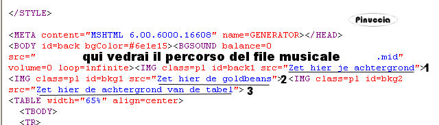 qui puoi trovare qualche risposta ai tuoi dubbi. Se l'argomento che ti interessa non è presente, ti prego di segnalarmelo. Occorrente: Materiale qui I tubes sono di Wendy e Manon. Il pennello è di Juliette. Metti il pennello BC-brush25 nella cartella Pennelli. Metti il motivo Goldbeads nella cartella Motivi. Se lo apri in PSP e lo minimizzi, lo troverai nella lista dei motivi disponibili quando ti servirà. Se vuoi realizzare lo script salva una copia in formato jpg. Filtri: Greg's Factory Output qui Imposta il colore di primo piano con #7B2319, e il colore di sfondo con un motivo oro, (non Goldbeans, se non hai un motivo oro clicca qui). ![]() 1. Apri una nuova immagine trasparente 550 x 450 pixels, e riempila con il motivo di primo piano.2. Attiva lo strumento Pennello ![]() cerca e seleziona il pennello BC Brushe 25, e applicalo al centro dell'immagine cliccando una volta con il tasto destro del mouse per usare il motivo oro. Regola>Messa a fuoco>Metti a fuoco, 3 volte. ![]() 3. Apri il tube con i fiori e vai a Modifica>Copia. Torna al tuo lavoro e vai a Modifica>Incolla come nuovo livello. Regola>Messa a fuoco>Metti a fuoco. Livelli>Unisci>Unisci tutto. 4. Immagine>Aggiungi bordatura, 3 pixels, simmetriche, con il colore bianco. Seleziona il bordo con la bacchetta magica ![]() ![]() Imposta il colore di sfondo con il motivo Goldbeads: ![]() Riempi la selezione con questo motivo.5. Immagine>Ridimensiona, a 350 pixels di larghezza, mantieni proporzioni selezionato. ![]() Regola>Messa a fuoco>Metti a fuoco, 1 o 2 volte. Modifica>Copia. 6. Apri una nuova immagine trasparente 600 x 430 pixels, e riempila con il colore di primo piano.7. Effetti>Plugins>Greg's Factory Output - Poolshadow, con i settaggi standard. ![]() 8. Modifica>Incolla>Incolla come nuovo livello. Posiziona l'immagine come nell'esempio.![]() Effetti>Effetti 3D>Sfalsa ombra, con i seguenti settaggi: ![]() Ripeti l'Effetto Sfalsa ombra, cambiando verticale e orizzontale con -3. 9. Apri il tube con i ballerini e vai a Modifica>copia. Torna al tuo lavoro e vai a Modifica>Incolla>Incolla come nuovo livello. Regola>Messa a fuoco>Metti a fuoco. Effetti>Effetti 3D>sfalsa ombra, con i settaggi precedenti. Livelli>Unisci>Unisci tutto. 10. Attiva lo strumento Testo , crea come vettore, e scrivi un testo.Livelli>Converti in livello raster. Effetti>Effetti 3D>Sfalsa ombra, con i settaggi precedenti. Regola>Messa a fuoco>Metti a fuoco. 11. Immagine>Aggiungi bordatura, 3 pixels, simmetriche, con il colore bianco. Seleziona il bordo con la bacchetta magica ![]() e riempilo con il motivo Goldbeans.Regola>Messa a fuoco>Metti a fuoco. Selezione>Nessuna selezione. L'immagine è finita. Se vuoi realizzare lo script ti occorrono due immagini di sfondo, e il motivo goldbeads. Per eseguire lo script Apri lo script di Jeannette che trovi qui, e segui i preliminari descritti alla fine di questo tutorial, fino all'inserimento dello sfondo-suono. Dopo aver inserito lo sfondo-suono, dovrai indicare allo script dove trovare le immagini. Clicca su Origine e identifica i punti di inserimento dei vari elementi dello script. Se hai messo tutti i file in una cartella, il percorso del suono ti servirà da guida per l'inserimento degli altri files: ti basterà cambiare l'ultima parte: il nome e l'estensione. Nella schermata sotto è indicato il punto in cui dovrai inserire il percorso delle due immagini di sfondo. 1. Qui inserisci il percorso della prima immagine di sfondo. 2. Qui inserisci il percorso del motivo goldbeads. 3. Qui inserisci il percorso della seconda immagine di sfondo che ti servirà per le tabelle laterali. ![]() Nella schermata sotto è indicato il punto in cui dovrai inserire il percorso dell'immagine principale. ![]() Ricorda che, contemporaneamente, puoi controllare il risultato andando su Anteprima. fai molta attenzione alle estensioni dei files e alle maiuscole-minuscole, che devono essere corrette, altrimenti lo script non troverà le immagini da inserire Clicca adesso sulla linguetta Modifica, per aggiungere il testo. clicca due volte all'interno del riquadro. Apparirà la cornice che ti dà il via libera per sostituire il testo esistente e aggiungere il tuo. Quando hai finito, clicca all'esterno e la cornice sparirà. Il tuo messaggio con lo script è pronto per il tasto Invia. Se non vuoi spedirlo e vuoi soltanto tenerlo per te, vai a File>Salva con nome e mettilo in una cartella a tua scelta. Ricordati, però, che quando vorrai rivedere lo script, i files devono trovarsi nello stesso posto. Se nel frattempo li avrai spostati, vedrai soltanto delle crocette rosse. Avvertimento: non devi preoccuparti se in Modifica non vedrai il messaggio come dovrebbe essere (per fare questo devi andare in Anteprima). Ricorda ancora che per inviare il messaggio ti devi posizionare su Modifica. ![]() Se hai problemi o dubbi, o trovi un link non funzionante, o anche soltanto per dirmi che ti è piaciuto, scrivimi. 12 Giugno 2008 |