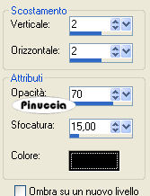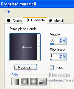 qui puoi trovare qualche risposta ai tuoi dubbi. Se l'argomento che ti interessa non è presente, ti prego di segnalarmelo. Questo tutorial è stato scritto in PSP 9, ma può essere eseguito con qualsiasi versione del programma. Occorrente: Materiale qui I tubes sono di Jeannette. Filtri: Greg's Factory Output II qui FM Tile Tools qui Imposta il colore di primo piano con #201D2A, e il colore di sfondo con #615D72. Ti servirà anche Animation Shop qui 1. Apri una nuova immagine trasparente 700 x 500 pixels, e riempila con il colore di primo piano.2. Effetti>Plugins>Greg's Factory Output - Poolshadow: ![]() 3. Apri il tube del tulipano. Elimina il livello del watermark. 4. Modifica>Copia. Torna al tuo lavoro e vai a Modifica>Incolla come nuovo livello. 5. Immagine>Ruota per gradi - 135 a sinistra: ![]() 6. Sposta il tulipano nell'angolo in alto a destra.7. Regola>Tonalità e saturazione>Viraggio: ![]() 8. Effetti>Plugins>FM Tile Tools - Blend Emboss, con i settaggi standard, 2 volte. ![]() 9. Nella paletta dei livelli abbassa l'opacità di questo livello al 20%. 10. Apri il tube con la donna e vai a Modifica>Copia. Torna al tuo lavoro e vai a Modifica>Incolla come nuovo livello. Sposta il tube a sinistra.11. Livelli>Unisci>Unisci tutto. 12. Immagine>Aggiungi bordatura, 1 pixel, simmetriche, con il colore di primo piano. Immagine>Aggiungi bordatura, 19 pixels, simmetriche, con il colore di sfondo. Seleziona questo bordo con la bacchetta magica ![]() ![]() Passa il colore di primo piano a Gradiente, con i seguenti settaggi: ![]() Riempi la selezione con il gradiente.13. Effetti>Effetti 3D>Smusso a incasso, con i seguenti settaggi: ![]() 14. Selezione>Deseleziona. L'immagine principale è finita. Adesso passiamo all'immagine del tulipano. 15. Apri una nuova immagine trasparente 150 x 150 pixels, e riempila con il colore di sfondo.16. Effetti>Plugins>Greg's Factory Output - PoolShadow. ![]() 17. Ripeti i punti 12 e 13. Selezione>Deseleziona. 18. Livelli>Duplica, 2 volte, e avrai tre livelli. 19. Attiva nuovamente il tube con il tulipano. Immagine>Ridimensiona, 150 x 150, mantieni proporzioni non selezionato. 20. Modifica>Copia. Torna alla piccola immagine e vai a Modifica>Incolla come nuovo livello. L'immagine è già correttamente posizionata, non occorre spostarla. Regola>Messa a fuoco>Metti a fuoco. 21. Effetti>Effetti 3D>Sfalsa ombra: ![]() Ripeti l'Effetto Sfalsa ombra, cambiando verticale e orizzontale con -2. 22. Livelli>Duplica, 2 volte e avrai tre livelli. 23. Attiva il livello superiore. 24. Regola>Tonalità e saturazione>Viraggio, come al punto 7. ![]() 25. Nella paletta dei livelli sposta il livello superiore degli sfondi sotto questo livello. ![]() ![]() 26. Attiva nuovamente il livello superiore. 27. Livelli>Unisci>Unisci giù. 28. Attiva il secondo livello del tulipano. Regola>Tonalità e Saturazione>Viraggio, con i seguenti settaggi: ![]() 29. Nella paletta dei livelli trascina il livello superiore degli sfondi sotto questo livello del tulipano. 30. Attiva il livello del tulipano e vai a Livelli>Unisci>Unisci giù. 31. Attiva l'ultimo livello del tulipano. Regola>Tonalità e Saturazione>Viraggio: ![]() 32. Livelli>Unisci>Unisci giù. 33. Se hai fatto tutto bene, dovresti avere tre livelli: ![]() 34. Salva questa immagine in formato PSP. 35. Apri Animation Shop e apri l'immagine che hai appena salvato. 36. Clicca sul primo fotogramma per selezionarlo e vai a Modifica>Seleziona tutto. 37. Animazione>Proprietà fotogramma, e imposta la velocità a 25. ![]() 38. Salva in formato gif. Le immagini sono pronte. Se vorrai realizzare lo script ti servirà anche un'immagine di sfondo e un motivo argentato per le tabelle laterali. Per eseguire lo script Apri lo script di Jeannette che trovi qui, e segui i preliminari descritti alla fine di questo tutorial, fino all'inserimento dello sfondo-suono. Dopo aver inserito lo sfondo-suono, dovrai indicare allo script dove trovare le immagini. Clicca su Origine e identifica i punti di inserimento dei vari elementi dello script. Se hai messo tutti i file in una cartella, il percorso del suono ti servirà da guida per l'inserimento degli altri files: ti basterà cambiare l'ultima parte: il nome e l'estensione. Nella schermata sotto è indicato il punto in cui dovrai inserire il percorso delle due immagini di sfondo. 1. Qui inserisci il percorso dell'immagine di sfondo. 2. Qui inserisci il percorso del motivo argentato, che servirà per le tabelle laterali. ![]() Nella schermata sotto sono indicati i punti in cui dovrai inserire: 1. il percorso dell'immagine principale, 2. i tre punti in cui dovrai inserire il percorso della gif del tulipano. ![]() Ricorda che, contemporaneamente, puoi controllare il risultato andando su Anteprima. fai molta attenzione alle estensioni dei files e alle maiuscole-minuscole, che devono essere corrette, altrimenti lo script non troverà le immagini da inserire Clicca adesso sulla linguetta Modifica, per aggiungere il testo. clicca due volte all'interno del riquadro. Apparirà la cornice che ti dà il via libera per sostituire il testo esistente e aggiungere il tuo. Quando hai finito, clicca all'esterno e la cornice sparirà. Il tuo messaggio con lo script è pronto per il tasto Invia. Se non vuoi spedirlo e vuoi soltanto tenerlo per te, vai a File>Salva con nome e mettilo in una cartella a tua scelta. Ricordati, però, che quando vorrai rivedere lo script, i files devono trovarsi nello stesso posto. Se nel frattempo li avrai spostati, vedrai soltanto delle crocette rosse. Avvertimento: non devi preoccuparti se in Modifica non vedrai il messaggio come dovrebbe essere (per fare questo devi andare in Anteprima). Ricorda ancora che per inviare il messaggio ti devi posizionare su Modifica. ![]() Se hai problemi o dubbi, o trovi un link non funzionante, o anche soltanto per un saluto, scrivimi. 2 Agosto 2008 |
