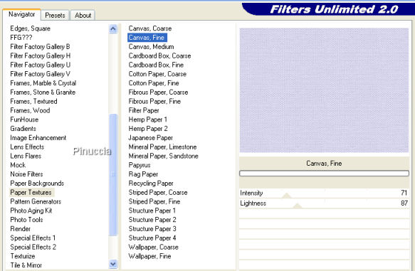 Effetti>Plugins>Filters Unlimited - Paper Textures - Canvas Fine, come al punto 3.