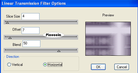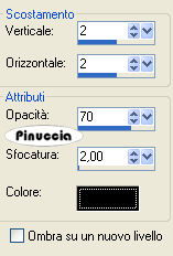 qui puoi trovare qualche risposta ai tuoi dubbi. Se l'argomento che ti interessa non è presente, ti prego di segnalarmelo. Occorrente: Materiale qui Il tube è di Alejandra Rosales. Non aprire bellen-lila in PSP. Serve, se vorrai realizzarlo, per lo script. Filtri: Simple qui DSB Flux qui Imposta il colore di primo piano con #DCD6E4, e il colore di sfondo con #5A4A65. Passa il colore di primo piano a Gradiente di primo piano/sfondo con i seguenti settaggi. ![]() 1. Apri il tube con il fiore. Duplicalo (usando sulla tastiera la combinazione di tasti shift(maiuscola)+D) e metti da parte l'originale. 2. Immagine>Ridimensiona, a 400 pixels di larghezza, mantieni proporzioni e tutti i livelli selezionato. Regola>Messa a fuoco>Metti a fuoco. 3. Elimina il livello del watermark. 4. Livelli>Nuovo livello raster. Riempi con il gradiente.5. Effetti>Plugins>Simple - Blinz. 6. Effetti>Effetti di bordo>Aumenta di più. 7. Livelli>Disponi>Porta sotto. 8. Attiva il livello superiore. Effetti>Effetti 3D>sfalsa ombra: ![]() 9. Livelli>Unisci>Unisci tutto. 10. Immagine>Aggiungi bordatura, 1 pixel, simmetriche, con il colore di primo piano. Immagine>Aggiungi bordatura, 5 pixels, simmetriche, con il colore di sfondo. Immagine>Aggiungi bordatura, 1 pixel, simmetriche, con il colore di primo piano. 11. Attiva lo strumento Bacchetta magica ![]() ![]() Clicca sul bordo da 5 pixels per selezionarlo. 12. Effetti>Effetti 3D>Smusso a incasso: ![]() 13. Selezione>Nessuna selezione. Metti da parte l'immagine per il momento. 14. Apri una nuova immagine trasparente 600 x 450 pixels, e riempila con il gradiente.15. Effetti>Plugins>Simple - Zoom Out and Flip. 16. Effetti>Plugins>DSB Flux - Linear Transmission: ![]() 17. Effetti>Effetti di bordo>Aumenta di più. 18. Livelli>Nuovo livello raster. Riempi con il gradiente.Nella paletta dei livelli, abbassa l'opacità di questo livello al 75%. 19. Livelli>Unisci>Unisci visibile. 20. Attiva l'immagine con il fiore che hai messo da parte prima e vai a Modifica>Copia. Torna allo sfondo (600x450) e vai a Modifica>Incolla>Incolla come nuovo livello. 21. Sposta l'immagine a sinistra.22. Effetti>Effetti 3D>sfalsa ombra: ![]() Ripeti l'Effetto Sfalsa ombra cambiando verticale e orizzontale con -2. 23. Ripeti i passaggi da 10 a 13. 24. Attiva lo strumento Selezione , rettangolo,e traccia un rettangolo a destra, come nell'esempio. ![]() 25. Livelli>Nuovo livello raster. Riempi con il gradiente.26. Effetti>Effetti di bordo>Aumenta di più. 27. Effetti>Effetti 3D>sfalsa ombra, con i settaggi usati al punto 22. 28. Attiva lo strumento Testo ![]() chiudi il colore di primo piano, e scrivi un testo. 29. Effetti>Effetti 3D>Sfalsa ombra: ![]() 30. Attiva la copia del tube che hai minimizzato all'inizio del tutorial. Elimina il livello del watermark. Immagine>Ridimensiona, a 100 pixels di larghezza. Immagine>Rifletti. Modifica>Copia. 31. Torna al tuo lavoro e vai a Modifica>Incolla>Incolla come nuovo livello. Sposta il tube a destra, sotto il rettangolo.32. Effetti>Effetti 3D>Sfalsa ombra, con i settaggi usati al punto 22. 33. Livelli>Unisci>Unisci tutto. 34. Attiva lo strumento Selezione a mano libera , da punto a punto,e seleziona il cuore del fiore: ![]() 35. Livelli>Duplica. 36. Regola>Aggiungi/rimuovi disturbo>Aggiungi disturbo: ![]() 37. Attiva l'altro livello del fiore. Regola>Aggiungi/Rimuovi disturbo>Aggiungi disturbo: ![]() 38. Selezione>Nessuna selezione. 39. Salva l'immagine in formato psp. 40. Apri Animation Shop e apri l'immagine che hai appena salvato. 41. La tua animazione, composta da due fotogrammi, è pronta. Controlla il risultato cliccando su Visualizza ![]() 42. Salva in formato gif: ![]() (impostando la qualità media, il file peserà di meno). L'immagine è finita. Se vuoi realizzare lo script, ti servirà anche un'immagine di sfondo e la gif bellen-lila (nello zip). Per eseguire lo script Apri lo script di Jeannette che trovi qui, e segui i preliminari descritti alla fine di questo tutorial, fino all'inserimento dello sfondo-suono. Dopo aver inserito lo sfondo-suono, dovrai indicare allo script dove trovare le immagini. Clicca su Origine e identifica i punti di inserimento dei vari elementi dello script. Se hai messo tutti i file in una cartella, il percorso del suono ti servirà da guida per l'inserimento degli altri files: ti basterà cambiare l'ultima parte: il nome e l'estensione. Nella schermata sotto è indicato il punto in cui dovrai inserire il percorso dell'immagine di sfondo. ![]() Nella schermata sotto è indicato il punto in cui dovrai inserire il percorso dell'immagine principale. ![]() Più avanti, dopo la chiusura dello script, troverai il punto in cui inserire il percorso della gif "bellen-lila": ![]() Ricorda che, contemporaneamente, puoi controllare il risultato andando su Anteprima. fai molta attenzione alle estensioni dei files e alle maiuscole-minuscole, che devono essere corrette, altrimenti lo script non troverà le immagini da inserire Clicca adesso sulla linguetta Modifica, per aggiungere il testo. clicca due volte all'interno del riquadro. Apparirà la cornice che ti dà il via libera per sostituire il testo esistente e aggiungere il tuo. Quando hai finito, clicca all'esterno e la cornice sparirà. Il tuo messaggio con lo script è pronto per il tasto Invia. Se non vuoi spedirlo e vuoi soltanto tenerlo per te, vai a File>Salva con nome e mettilo in una cartella a tua scelta. Ricordati, però, che quando vorrai rivedere lo script, i files devono trovarsi nello stesso posto. Se nel frattempo li avrai spostati, vedrai soltanto delle crocette rosse. Avvertimento: non devi preoccuparti se in Modifica non vedrai il messaggio come dovrebbe essere (per fare questo devi andare in Anteprima). Ricorda ancora che per inviare il messaggio ti devi posizionare su Modifica. ![]() Se hai problemi o dubbi, o trovi un link non funzionante, o anche soltanto per dirmi che ti è piaciuto, scrivimi. 14 Giugno 2008 |