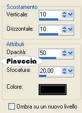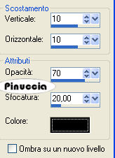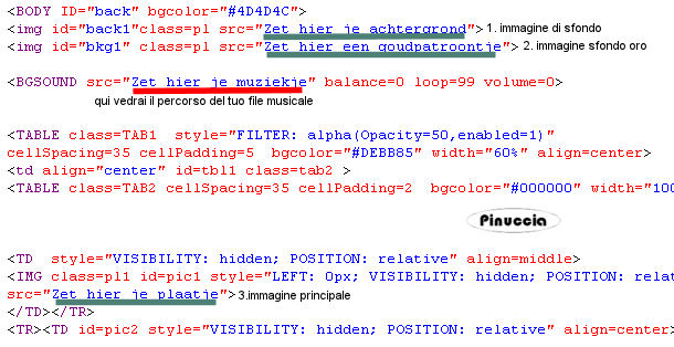 qui puoi trovare qualche risposta ai tuoi dubbi. Se l'argomento che ti interessa non è presente, ti prego di segnalarmelo. Occorrente: Materiale qui I tubes sono di Jet e Azyzam. Filtri: Simple qui Greg's Factory Output II qui Imposta il colore di primo piano con #BFA172, e il colore di sfondo con #746144. 1. Apri una nuova immagine trasparente 700 x 500 pixels, e riempila con il colore di primo piano.2. Effetti>Plugins>Greg's Factory - Pool Shadow: ![]() 3. Selezione>Seleziona tutto. Selezione>Modifica>Contrai, di 40 pixels. 4. Effetti>Plugins>Simple - Diamond. 5. Effetti>Effetti di bordo>Aumenta. 6. Effetti>Effetti 3D>Sfalsa ombra: ![]() Ripeti l'Effetto Sfalsa ombra, ma cambiando verticale e orizzontale con -10. 7. Selezione>Nessuna selezione. 8. Apri il tube di Azyzam "Vlinder op". Immagine>Ridimensiona, a 475 pixels di altezza. Modifica>Copia. 9. Torna al tuo lavoro e vai a Modifica>Incolla come nuovo livello. Sposta il tube a destra, sul bordo interno.10. Effetti>Effetti 3D>Sfalsa ombra, con i seguenti settaggi: ![]() 11. Apri il tube della donna di Jet. Immagine>Ridimensiona, a 500 pixels di altezza. Modifica>Copia. 12. Torna al tuo lavoro e vai a Modifica>Incolla come nuovo livello. Sposta il tube a sinistra, contro il bordo inferiore.13. Effetti>Effetti 3D>Sfalsa ombra: ![]() 14. Regola>Messa a fuoco>Metti a fuoco. 15. Livelli>Unisci>Unisci visibile. 16. Immagine>Aggiungi bordatura, 1 pixel, simmetriche, con il colore di sfondo. L'immagine è finita. Se vuoi realizzare lo script ti servono due immagini di sfondo, di cui uno dorato. Per eseguire lo script Apri lo script di Jeannette che trovi qui, e segui i preliminari descritti alla fine di questo tutorial, fino all'inserimento dello sfondo-suono. Dopo aver inserito lo sfondo-suono, dovrai indicare allo script dove trovare le immagini. Clicca su Origine e identifica i punti di inserimento dei vari elementi dello script. Se hai messo tutti i file in una cartella, il percorso del suono ti servirà da guida per l'inserimento degli altri files: ti basterà cambiare l'ultima parte: il nome e l'estensione. Nella schermata sotto sono indicati i punti in cui dovrai inserire, tra le virgolette, il percorso delle due immagini di sfondo, e dell'immagine principale. 1. Qui inserisci il percorso del primo sfondo. 2. Qui inserisci il percorso dello sfondo oro, che servirà per le tabelle. 3. Qui inserisci il percorso della tua immagine principale. ![]() Ricorda che, contemporaneamente, puoi controllare il risultato andando su Anteprima. fai molta attenzione alle estensioni dei files e alle maiuscole-minuscole, che devono essere corrette, altrimenti lo script non troverà le immagini da inserire Clicca adesso sulla linguetta Modifica, per aggiungere il testo. clicca due volte all'interno del riquadro. Apparirà la cornice che ti dà il via libera per sostituire il testo esistente e aggiungere il tuo. Quando hai finito, clicca all'esterno e la cornice sparirà. Il tuo messaggio con lo script è pronto per il tasto Invia. Se non vuoi spedirlo e vuoi soltanto tenerlo per te, vai a File>Salva con nome e mettilo in una cartella a tua scelta. Ricordati, però, che quando vorrai rivedere lo script, i files devono trovarsi nello stesso posto. Se nel frattempo li avrai spostati, vedrai soltanto delle crocette rosse. Avvertimento: non devi preoccuparti se in Modifica non vedrai il messaggio come dovrebbe essere (per fare questo devi andare in Anteprima). Ricorda ancora che per inviare il messaggio ti devi posizionare su Modifica. ![]() Se hai problemi o dubbi, o trovi un link non funzionante, o anche soltanto per dirmi che ti è piaciuto, scrivimi. 2 Novembre 2007 |