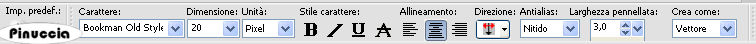 qui puoi trovare qualche risposta ai tuoi dubbi. Se l'argomento che ti interessa non è presente, ti prego di segnalarmelo. Occorrente: Materiale qui Il tube dei gigli è di Yoka e il tube della donna è di Crystal. Imposta il colore di primo piano con #B9CBC6, e il colore di sfondo con il bianco #ffffff. 1. Apri il tube dei gigli. Elimina il livello del watermark. 2. Livelli>Nuovo livello raster. Riempi con il colore di primo piano.Livelli>Disponi>Porta sotto. 3. Livelli>Unisci>Unisci tutto. Regola>Messa a fuoco>Metti a fuoco. 4. Attiva lo strumento Forme predefinite , ellisse![]() 5. Traccia la forma partendo dall'angolo in alto a sinistra fino in basso a destra, a circa mezzo centimetro dall'angolo, come nell'esempio: ![]() per illustrare l'esempio e ottenere la forma con il colore bianco, ho invertito i colori nella paletta dei livelli, 7. Attiva lo strumento Testo ![]() e seleziona il font Bookman Old Style, dimensione 16, se stai usando PSP X, come nel mio esempio regola la dimensione a 20: ![]() Appoggia il mouse sull'ovale e quando vedi una A sottolineata da una mezzaluna , clicca per far apparire la finestra del testo.8. Digita una serie di punti finchè non avrai incorniciato l'ovale. ![]() Nella paletta dei livelli nascondi il livello della forma. ![]() Livelli>Converti in livello raster. 9. Regola>Messa a fuoco>Metti a fuoco, 4 o 5 volte. 10. Effetti>Effetti 3D>sfalsa ombra, con i seguenti settaggi. ![]() 13. Attiva lo strumento Bacchetta magica e clicca nell'ovale per selezionarlo.Selezione>Modifica>Espandi - 14 pixels. Eventualmente, riduci il settaggio se vedi che va troppo oltre la forma. Per il mio esempio ho impostato il settaggio a 10. 14. Livelli>Unisci>Unisci visibile. 15. Modifica>Copia. Modifica>Incolla>Incolla come nuova IMMAGINE. Dovresti avere qualcosa di simile: ![]() 16. Duplica l'immagine usando sulla tastiera la combinazione di tasti shift(maiuscola)+D. Immagine>Ridimensiona, al 90%. 17. Attiva l'immagine più grande. Immagine>ruota a sinistra. se stai usando PSP 9: Immagine>Ruota>90 gradi in senso antiorario. 18. Apri una nuova immagine trasparente 650 x 400 pixels, e riempila con il colore di primo piano.19. Attiva le due immagini con gli ovali e vai a Modifica>Copia. Torna all'immagine 650x400 e vai a Modifica>Incolla come nuovo livello. Sistema gli ovali come nel mio esempio.![]() 20. Apri il tube con la donna e vai a Modifica>Copia. Torna al tuo lavoro e vai a Modifica>Incolla come nuovo livello. Sposta il tube nell'angolo in alto a sinistra.21. Controlla che tutto sia al posto giusto e vai a Livelli>Unisci>Unisci tutto. 22. Chiudi il colore di primo piano. 23. Attiva lo strumento Testo , scegli un bel font e scrivi il tuo testo.Effetti>Effetti 3D>Sfalsa ombra, con i settaggi precedenti. ![]() Selezione>Nessuna selezione. Livelli>Unisci>Unisci tutto. 24. Immagine>Aggiungi bordatura, 1 pixel simmetriche, con il colore bianco. L'immagine è finita. Se vuoi realizzare lo script ti occorrono anche tre immagini di sfondo: tre piccole immagini 100 x 100 pixels alle quali applica l'Effetto Motivo unico. Per eseguire lo script Apri lo script di Jeannette che trovi qui, e segui i preliminari descritti alla fine di questo tutorial, fino all'inserimento dello sfondo-suono. Dopo aver inserito lo sfondo-suono, dovrai indicare allo script dove trovare le immagini. Clicca su Origine e identifica i punti di inserimento dei vari elementi dello script. Se hai messo tutti i file in una cartella, il percorso del suono ti servirà da guida per l'inserimento degli altri files: ti basterà cambiare l'ultima parte: il nome e l'estensione. Nella schermata sotto è indicato il punto in cui dovrai inserire il percorso delle due immagini di sfondo. 1. Qui inserisci il percorso della prima immagine di sfondo. 2. Qui inserisci il percorso dello sfondo argento per i bordi chiari. 3. Qui inserisci il percorso dell'immagine di sfondo per i bordi scuri. ![]() Nella schermata sotto è indicato il punto in cui dovrai inserire il percorso dell'immagine principale. ![]() Ricorda che, contemporaneamente, puoi controllare il risultato andando su Anteprima. fai molta attenzione alle estensioni dei files e alle maiuscole-minuscole, che devono essere corrette, altrimenti lo script non troverà le immagini da inserire Clicca adesso sulla linguetta Modifica, per aggiungere il testo. clicca due volte all'interno del riquadro. Apparirà la cornice che ti dà il via libera per sostituire il testo esistente e aggiungere il tuo. Quando hai finito, clicca all'esterno e la cornice sparirà. Il tuo messaggio con lo script è pronto per il tasto Invia. Se non vuoi spedirlo e vuoi soltanto tenerlo per te, vai a File>Salva con nome e mettilo in una cartella a tua scelta. Ricordati, però, che quando vorrai rivedere lo script, i files devono trovarsi nello stesso posto. Se nel frattempo li avrai spostati, vedrai soltanto delle crocette rosse. Avvertimento: non devi preoccuparti se in Modifica non vedrai il messaggio come dovrebbe essere (per fare questo devi andare in Anteprima). Ricorda ancora che per inviare il messaggio ti devi posizionare su Modifica. ![]() Se hai problemi o dubbi, o trovi un link non funzionante, o anche soltanto per dirmi che ti è piaciuto, scrivimi. 8 Giugno 2008 |