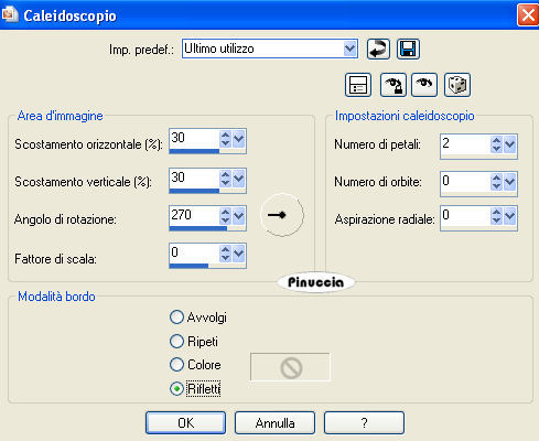 qui puoi trovare qualche risposta ai tuoi dubbi. Se l'argomento che ti interessa non è presente, ti prego di segnalarmelo. Occorrente: Materiale qui Il tube della tigre è di Crystal, il tube della donna è di Yoka. Non aprire le stelline in PSP. Ti serviranno se vorrai realizzare lo script. Imposta il colore di primo piano con #B1C9BD, e il colore di sfondo con #E8E4DB. Passa il colore di primo piano a Gradiente di primo piano/sfondo, con i seguenti settaggi. ![]() 1. Apri una nuova immagine trasparente 600 x 450 pixels, e riempila con il gradiente.2. Effetti>Effetti di bordo>Aumenta di più. Effetti>Effetti di bordo>Aumenta. 3. Effetti>Effetti di riflesso>Caleidoscopio, con i seguenti settaggi. ![]() 4. Regola>Messa a fuoco>Metti a fuoco - 2 volte. 5. Con lo strumento Selezione a mano libera , da punto a punto,seleziona la parte in alto al centro, come nell'esempio: ![]() 6. Effetti>Effetti di riflesso>Caleidoscopio, come al punto 3, due volte. Selezione>Deseleziona. 7. Come hai fatto al punto 5, seleziona la parte inferiore.Effetti>Effetti di riflesso>Caleidoscopio, come al punto 3. Regola>Messa a fuoco>Metti a fuoco. Selezione>Deseleziona. 8. Apri il tube della tigre. Immagine>Ridimensiona, a 470 pixels di altezza. Modifica>Copia. Torna al tuo lavoro e vai a Modifica>Incolla come nuovo livello. Sposta il tube completamente a sinistra,facendolo uscire dall'immagine, vedi il mio esempio. 9. Apri il tube della donna e vai a Modifica>Copia. Torna al tuo lavoro e vai a Modifica>Incolla come nuovo livello. Sposta il tube a destra,lasciando visibile la sezione inferiore che nello script sarà coperta dalle stelline animate. 11. Chiudi il colore di primo piano. Attiva lo strumento Testo , crea come vettore, e scrivi il tuo testo.Livelli>Converti in livello raster. Effetti>Effetti 3D>Sfalsa ombra, con i seguenti settaggi: ![]() 12. Ripeti il testo due volte riducendo la dimensione del font. 13. Livelli>Unisci>Unisci tutto. 14. Immagine>Aggiungi bordatura, 5 pixels, simmetriche, con il colore rosso. Seleziona il bordo con la bacchetta magica ![]() e riempilo con il gradiente.15. Effetti>Effetti 3D>Pulsante, con i settaggi standard. Selezione>Deseleziona. L'immagine è finita. Se vorrai realizzare lo script ti serviranno anche due immagini di sfondo, (una di queste, che ti servirà per le tabelle laterali - "jean-mint" la trovi nello zip), e la gif delle stelline (anche questa nello zip). Per eseguire lo script Apri lo script di Jeannette che trovi qui, e segui i preliminari descritti alla fine di questo tutorial, fino all'inserimento dello sfondo-suono. Dopo aver inserito lo sfondo-suono, dovrai indicare allo script dove trovare le immagini. Clicca su Origine e identifica i punti di inserimento dei vari elementi dello script. Se hai messo tutti i file in una cartella, il percorso del suono ti servirà da guida per l'inserimento degli altri files: ti basterà cambiare l'ultima parte: il nome e l'estensione. Nella schermata sotto è indicato il punto in cui dovrai inserire il percorso delle immagini di sfondo. 1. Qui inserisci il percorso dell'immagine di sfondo. 2. Qui inserisci il percorso dell'immagine che hai trovato nello zip: jean-mint, che servirà per le tabelle esterne. ![]() Nella schermata sotto sono indicati i due punti in cui dovrai inserire il percorso: 1. dell'immagine principale, 2. della gif delle stelline: ![]() Ricorda che, contemporaneamente, puoi controllare il risultato andando su Anteprima. fai molta attenzione alle estensioni dei files e alle maiuscole-minuscole, che devono essere corrette, altrimenti lo script non troverà le immagini da inserire Clicca adesso sulla linguetta Modifica, per aggiungere il testo. clicca due volte all'interno del riquadro. Apparirà la cornice che ti dà il via libera per sostituire il testo esistente e aggiungere il tuo. Quando hai finito, clicca all'esterno e la cornice sparirà. Il tuo messaggio con lo script è pronto per il tasto Invia. Se non vuoi spedirlo e vuoi soltanto tenerlo per te, vai a File>Salva con nome e mettilo in una cartella a tua scelta. Ricordati, però, che quando vorrai rivedere lo script, i files devono trovarsi nello stesso posto. Se nel frattempo li avrai spostati, vedrai soltanto delle crocette rosse. Avvertimento: non devi preoccuparti se in Modifica non vedrai il messaggio come dovrebbe essere (per fare questo devi andare in Anteprima). Ricorda ancora che per inviare il messaggio ti devi posizionare su Modifica. ![]() Se hai problemi o dubbi, o trovi un link non funzionante, o anche soltanto per dirmi che ti è piaciuto, scrivimi. 3 Giugno 2008 |
