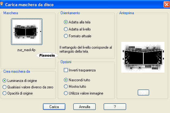 qui puoi trovare qualche risposta ai tuoi dubbi. Se l'argomento che ti interessa non è presente, ti prego di segnalarmelo. Questo tutorial è stato scritto per Jet, per ringraziarla dei suoi bellissimi tubes. Il suo sito è chiuso. Occorrente: Materiale qui Il tube è di Jet. La maschera è di Zuzanna. Metti il pennello nella cartella dei Pennelli (vedi alcuni appunti sui pennelli qui) Metti la maschera nella cartella Maschere. Non aprire l'animazione in PSP. Ti servirà più tardi in Animation Shop. Apri una nuova immagine trasparente 700 x 500 pixels, e riempila con un colore preso dal tube.Io ho usato #e6d7d4. Livelli>Nuovo livello raster. Riempi il nuovo livello con il bianco.Carica/Salva maschera>Carica maschera da disco. Cerca e carica la maschera zuz_mask4p: ![]() Livelli>Unisci>Unisci gruppo. Apri l'immagine con le rose e vai a Modifica>Copia. Torna al tuo lavoro e vai a Modifica>Incolla>Incolla come nuovo livello. Abbassa l'opacità di questo livello all'85%. Livelli>Disponi>Sposta giù. Attiva ora il livello superiore. Apri il tube e vai a Modifica>Copia. Torna al tuo lavoro e vai a Modifica>Incolla>Incolla come nuovo livello. Effetti>Effetti 3D>Sfalsa ombra, con i seguenti settaggi, colore nero. ![]() Attiva lo strumento Pennello ![]() Cerca e seleziona il pennello "The way to your heart", e applicalo con il colore bianco sullo sfondo del tuo lavoro. Livelli>Unisci>Unisci tutto. Aggiungi il tuo nome e/o il tuo watermark. Io ho usato il font NevisonCasD, dimensione 48. Livelli>Unisci>Unisci tutto e salva in formato jpg. Se vuoi creare l'animazione: Copia l'immagine: Modifica>Copia. Apri Animation Shop. Clicca con il tasto destro del mouse sullo spazio vuoto e Incolla come nuova animazione. ![]() Modifica>Duplica, e ripeti finchè non avrai ottenuto 8 fotogrammi. Clicca sul primo fotogramma per selezionarlo e vai a Modifica>Seleziona tutto. Apri l'animazione 0328 che hai trovato con il materiale. Clicca sul primo fotogramma per selezionarlo e vai a Modifica>Seleziona tutto, e poi Modifica>Copia. Torna al tuo lavoro e vai a Modifica>Incolla>Incolla nel fotogramma selezionato. Posiziona l'animazione e, quando sei certo di aver trovato la posizione corretta, rilascia il tasto del mouse. Animazione>Proprietà fotogramma, e imposta la velocità a 15 o 20. ![]() per controllare il risultato clicca su Visualizza ,più è alto il valore, più lenta è l'animazione Quando sei soddisfatto, salva in formato gif. Nell'esempio sotto ho usato un tube di Crystal. ![]() ![]() Se hai problemi o dubbi, o trovi un link non funzionante, o anche soltanto per un saluto, scrivimi. 14 Agosto 2007 |