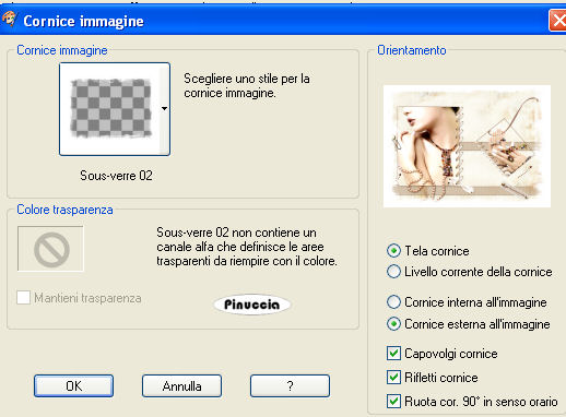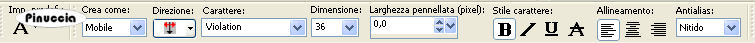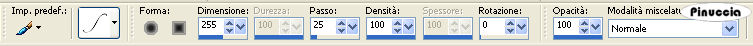 applica una leggera rotazione sulla sinistra.21. Attiva lo strumento Selezione a mano libera (Lasso), con questi settaggi: ![]() 22. Circonda le parti della clip che devono trovarsi dietro l'immagine, come si vede nella schermata. ![]() 23. Premi sulla tastiera il tasto CANC. 24. Apri il tube "Thascrapbox-autumn Blues-missue2006" e vai a Modifica>Copia. Torna al tuo lavoro e vai a Modifica>Incolla come nuovo livello. Spostalo a destra.Con lo strumento Deformazione ![]() applica una leggera rotazione verso destra. Effetti>Effetti 3D>Sfalsa ombra, con i settaggi del passo 6. Per la firma vedremo più tardi. 25. Apri il tube "PatryTubes_06_jewels_05" e vai a Modifica>Copia. Torna al tuo lavoro e vai a Modifica>Incolla>Incolla come nuovo livello. Posizionalo in basso al quadro di sinistra (vedi la tag finale). Immagine>Ridimensiona, 70%. Nella paletta dei livelli cambia la modalità di miscelatura di questo livello in Luce netta. Effetti>Effetti 3D>Sfalsa ombra, con i settaggi del passo 6. Livelli>Unisci>Unisci tutto (appiattisci). Livelli>Nuovo livello raster. Seconda parte: i pennelli. . 26. Imposta il colore scuro come colore di primo piano. Attiva lo strumento Pennello ![]() Cerca il pennello "phoenix-psp-arrow004" (la freccia), dimensione 125. Applicalo a sinistra della tag (vedi la tag finale). ![]() Livelli>Nuovo livello raster. 27. Mantieni il colore scuro come colore di primo piano. Cerca il pennello "phoenix-psp-arrow003" dimensione 93. Applicalo sulla destra sotto il quadro piccolo (vedi la tag finale). ![]() Livelli>Nuovo livello raster. 28. Mantieni il colore scuro come colore di primo piano. Cerca il pennello "phoenix-psp-ornament005" dimensione 255. Applicalo a destra della tag sul quadro piccolo (vedi la tag finale). ![]() . 29. Nella paletta dei livelli, abbassa l'opacità di questo livello al 62%. Livelli>Unisci>Unisi visibile. Livelli>Nuovo livello raster. Terza parte: i testi. 30. Imposta come colore di sfondo il colore scuro e chiudi il colore di primo piano. Attiva lo strumento Testo e scegli il font Violation,dimensione 36. ![]() Firma sul nastro di destra. 31. Nella paletta dei livelli abbassa l'opacità di questo livello al 90%. Dovresti avere questo: ![]() Livelli>Unisci>Unisci visibile. 32. Immagine>Cornice immagine. Cerca la cornice "Sous verre02" e applicala. Sulle cornici-immagini vedi qui ![]() Livelli>Unisci>Unisci visibile. 33. Attiva lo strumento Selezione , rettangolo.Traccia un rettangolo attorno alla tag per ridurla e togliere lo spazio bianco superfluo. ![]() Modifica>Copia e poi Modifica>Incolla>Incolla come nuova immagine. Elimina l'immagine di partenza. 34. Apri il tube "Lowercase Alpha16106". Con lo strumento Lasso ![]() seleziona ogni lettera delle parole "Jewels scrap" e vai a Modifica>Copia. Quindi sulla tua tag Modifica>Incolla>Incolla come nuovo livello. Posiziona la lettera in alto.Effetti>Effetti 3D>Sfalsa ombra, con i settaggi del passo 6. Immagine>Ridimensiona, 80%. Livelli>Unisci>Unisci tutto (appiattisci). 35. Immagine>Ridimensiona, 500 pixels di altezza (tutti i livelli non selezionato). 36. Regola>Messa a fuoco>Metti a fuoco. ![]() Se hai problemi o dubbi, o trovi un link non funzionante, o anche soltanto per un saluto, scrivimi. Agosto 2006 |