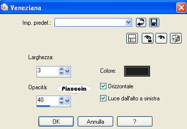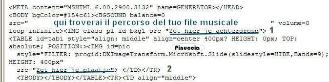 qui puoi trovare qualche risposta ai tuoi dubbi. Se l'argomento che ti interessa non è presente, ti prego di segnalarmelo. Occorrente: Materiale qui I tubes sono di Top Design. Filtri: Simple qui Greg's Factory Output II qui Eye Candy 3 qui Imposta il colore di primo piano con #0B475B, e il colore di sfondo con un motivo oro. Se non hai un motivo oro prendilo qui 1. Apri una nuova immagine con il colore di primo piano 800 x 400 pixels. 2. Effetti>Plugins>Greg's Factory Output - Poolshadow, con i seguenti settaggi: ![]() 3. Effetti>Effetti di trama>Veneziana: ![]() 4. Selezione>Seleziona tutto. Selezione>Modifica>Contrai, di 25 pixels. ![]() Mantieni selezionato. 5. Effetti>Effetti 3D>Smusso a incasso: ![]() 6. Effetti>Plugins>Simple>Diamonds. Selezione>Inverti. Adesso è selezionato il bordo. Regola>Messa a fuoco>Metti a fuoco. Ripeti il punto 5. Selezione>Nessuna selezione. 7. Apri il tube con la donna. Immagine>Rifletti. Modifica>Copia. Torna al tuo lavoro e vai a Modifica>Incolla>Incolla come nuovo livello. Sposta il tube a sinistra.Effetti>Plugins>Eye Candy - Drop Shadow, con i settaggi standard. ![]() 8. Apri il tube con l'uomo e vai a Modifica>Copia. Torna al tuo lavoro e vai a Modifica>Incolla>Incolla come nuovo livello. Sposta il tube a destra.Effetti>Plugins>Eye Candy - Drop Shadow, con i settaggi standard. Livelli>Unisci>Unisci tutto. 9. Livelli>Nuovo livello raster. Attiva lo strumento Forme predefinite e seleziona un fumetto con i seguenti settaggi:![]() Imposta il colore di primo piano con il motivo oro e il colore di sfondo con #0B475B. Disegna il fumetto vicino alla donna. Se cominci a disegnare la forma partendo dal basso verso l'alto, la "freccia" del fumetto avrà la direzione corretta. ![]() 10. Chiudi il colore di primo piano. Attiva lo strumento Testo , scegli un font e scrivi un testo nel fumetto.Applica un leggero Effetto Sfalsa ombra. Selezione>Nessuna selezione. 11. Immagine>Aggiungi bordatura, 3 pixels, simmetriche, con il colore rosso. Seleziona il bordo con la bacchetta magica ![]() e riempilo con il motivo oro.Selezione>Nessuna selezione. Livelli>Unisci>Unisci tutto. Immagine>Ridimensiona, a 800 x 400 pixels. L'immagine è finita. Se vuoi realizzare lo script di Jeannette, ti serve anche un'immagine di sfondo. Apri un'immagine 100x100 pixels con il colore di primo piano e applica un effetto trama a tua scelta. Salva in formato jpg. Per eseguire lo script Apri lo script di Jeannette che trovi qui, e segui i preliminari descritti alla fine di questo tutorial, fino all'inserimento dello sfondo-suono. Dopo aver inserito lo sfondo-suono, dovrai indicare allo script dove trovare le immagini. Clicca su Origine e identifica i punti di inserimento dei vari elementi dello script. Se hai messo tutti i file in una cartella, il percorso del suono ti servirà da guida per l'inserimento degli altri files: ti basterà cambiare l'ultima parte: il nome e l'estensione. Nella schermata sotto sono indicati i punti in cui dovrai inserire, tra le virgolette, il percorso dell'immagine principale e dell'immagine di sfondo. 1. Qui inserisci il percorso dell'immagine di sfondo. 2. Qui inserisci il percorso dell'immagine principale. ![]() Ricorda che, contemporaneamente, puoi controllare il risultato andando su Anteprima. fai molta attenzione alle estensioni dei files e alle maiuscole-minuscole, che devono essere corrette, altrimenti lo script non troverà le immagini da inserire Clicca adesso sulla linguetta Modifica, per aggiungere il testo. clicca due volte all'interno del riquadro. Apparirà la cornice che ti dà il via libera per sostituire il testo esistente e aggiungere il tuo. Quando hai finito, clicca all'esterno e la cornice sparirà. Il tuo messaggio con lo script è pronto per il tasto Invia. Se non vuoi spedirlo e vuoi soltanto tenerlo per te, vai a File>Salva con nome e mettilo in una cartella a tua scelta. Ricordati, però, che quando vorrai rivedere lo script, i files devono trovarsi nello stesso posto. Se nel frattempo li avrai spostati, vedrai soltanto delle crocette rosse. Avvertimento: non devi preoccuparti se in Modifica non vedrai il messaggio come dovrebbe essere (per fare questo devi andare in Anteprima). Ricorda ancora che per inviare il messaggio ti devi posizionare su Modifica. ![]() Se hai problemi o dubbi, o trovi un link non funzionante, o anche soltanto per un saluto, scrivimi. 25 Giugno 2007 |