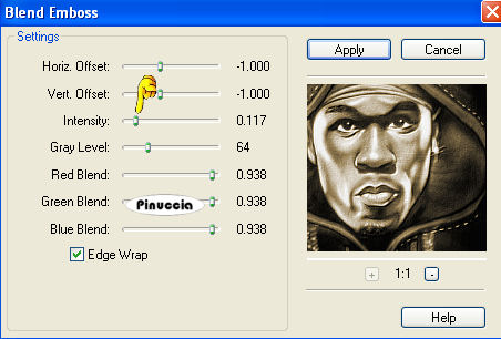 Effetti>Plugins>FM Tile Tools - Blend Emboss, con i settaggi standard.