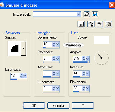 Effetti>Effetti 3D>Smusso a incasso, con i seguenti settaggi: