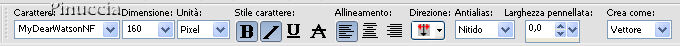 Seleziona il font MyDearWatsonNF, con i seguenti settaggi.