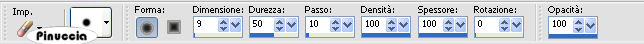 5. Attiva lo strumento Gomma con i seguenti settaggi:
