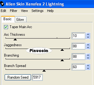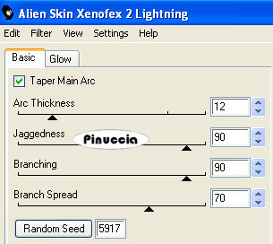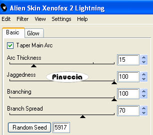 Effetti>Plugins>Alien Skin Xenofex 2 - Lightning, con i seguenti settaggi: