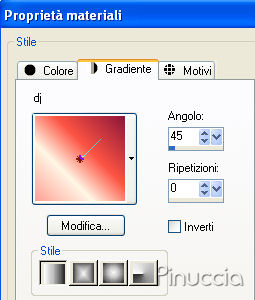 Passa il colore di primo piano a Gradiente, e seleziona il gradiente fornito, con settaggi a tuo piacimento.