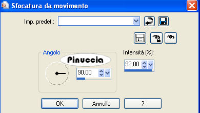 Regola>Sfocatura>Sfocatura da movimento, con i seguenti settaggi: