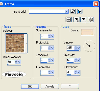 2. Effetti>Effetti di trama>Trama - seleziona la trama Coliseum, con i seguenti settaggi,