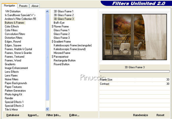 Effetti>Plugins>Filters Unlimited 2.0 - Buttons & Frames - 3D Glass Frame 3.