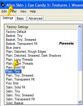Effetti>Plugins>Eye Candy 5 Textures - Weave, con i seguenti settaggi: