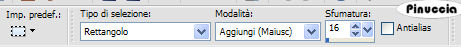 Attiva lo strumento Selezione , rettangolo, con i seguenti settaggi: