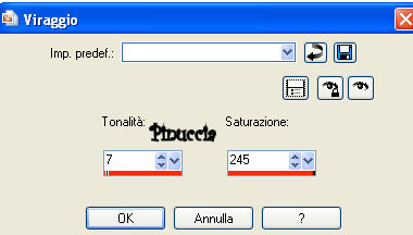 Regola>Saturazione e tonalità>Viraggio, con i settaggi precedenti.