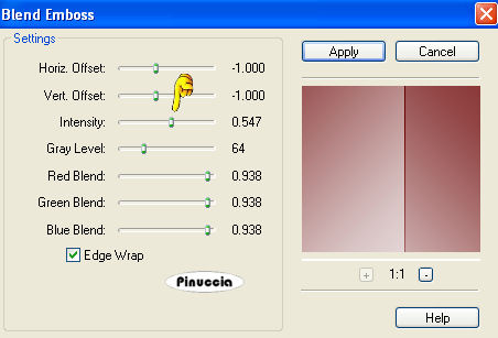 Effetti>Plugins>FM Tile Tools - Blend Emboss, con i seguenti settaggi: