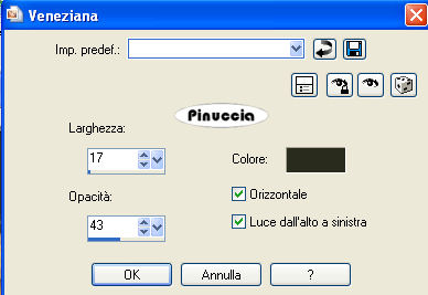 Effetti>Effetti di trama>Veneziana, con i seguenti settaggi, con il colore di sfondo.