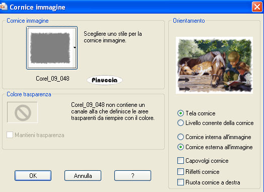 Immagine>Cornice-immagine - seleziona la cornice Corel_09_048.PspFrame con i seguenti settaggi: