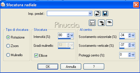Regola>Sfocatura>Sfocatura radiale, con i seguenti settaggi: