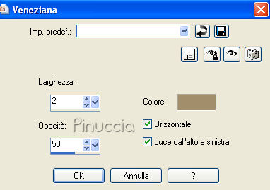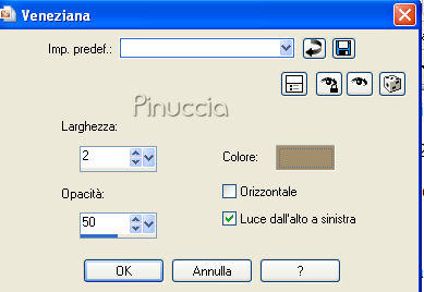 Effetti>Effetti di trama>Veneziana, con i seguenti settaggi, e con il colore di sfondo: